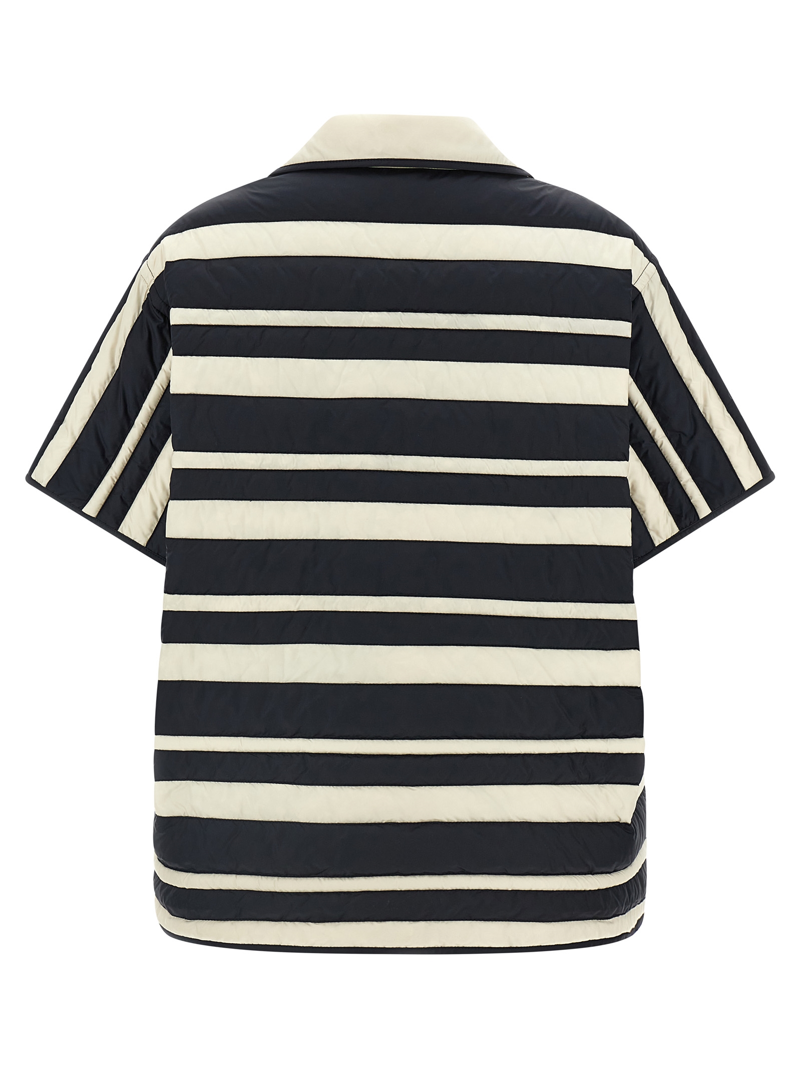 Shirt in technical fabric slightly padded with feather, snap button closure, V-neck, short sleeves with logo patch.Өнімнің ерекшеліктері