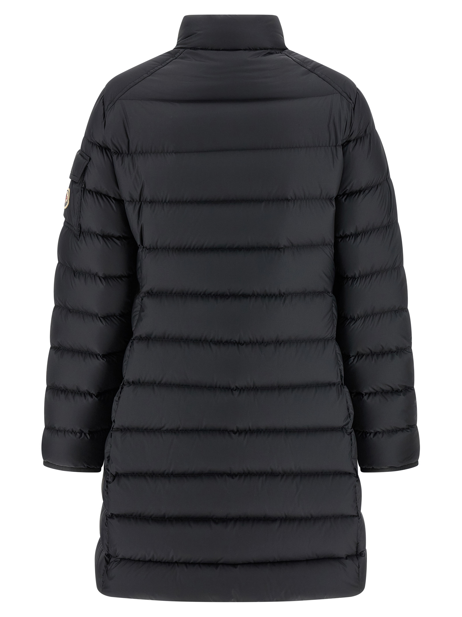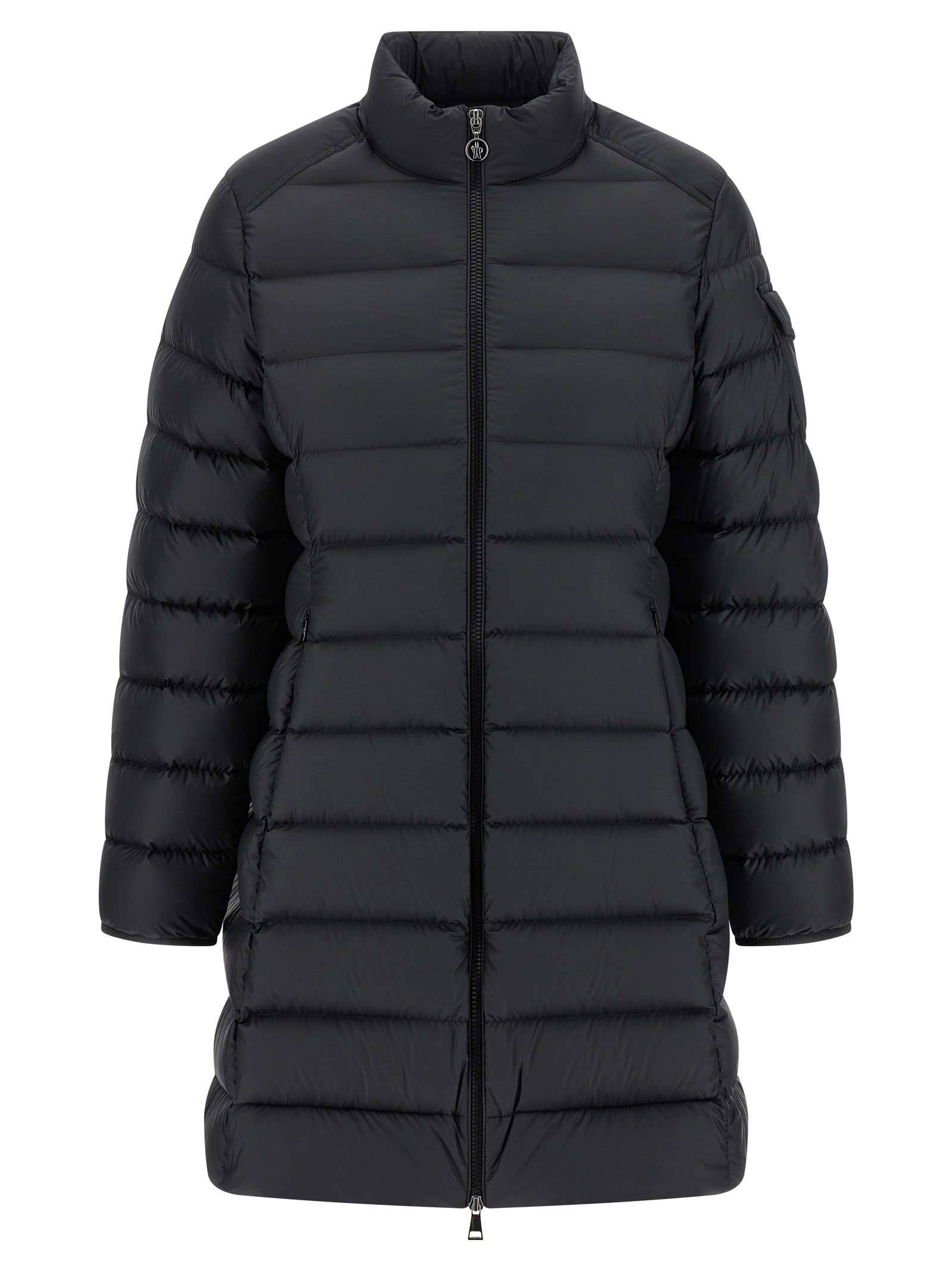 Microfiber 'Igesse' down jacket with boudin quilted matte finish and goose down padding, flared silhouette, standing collar, front zip closure, pockets, long cuffed sleeves and felt logo patch appliqué.Өнімнің ерекшеліктері