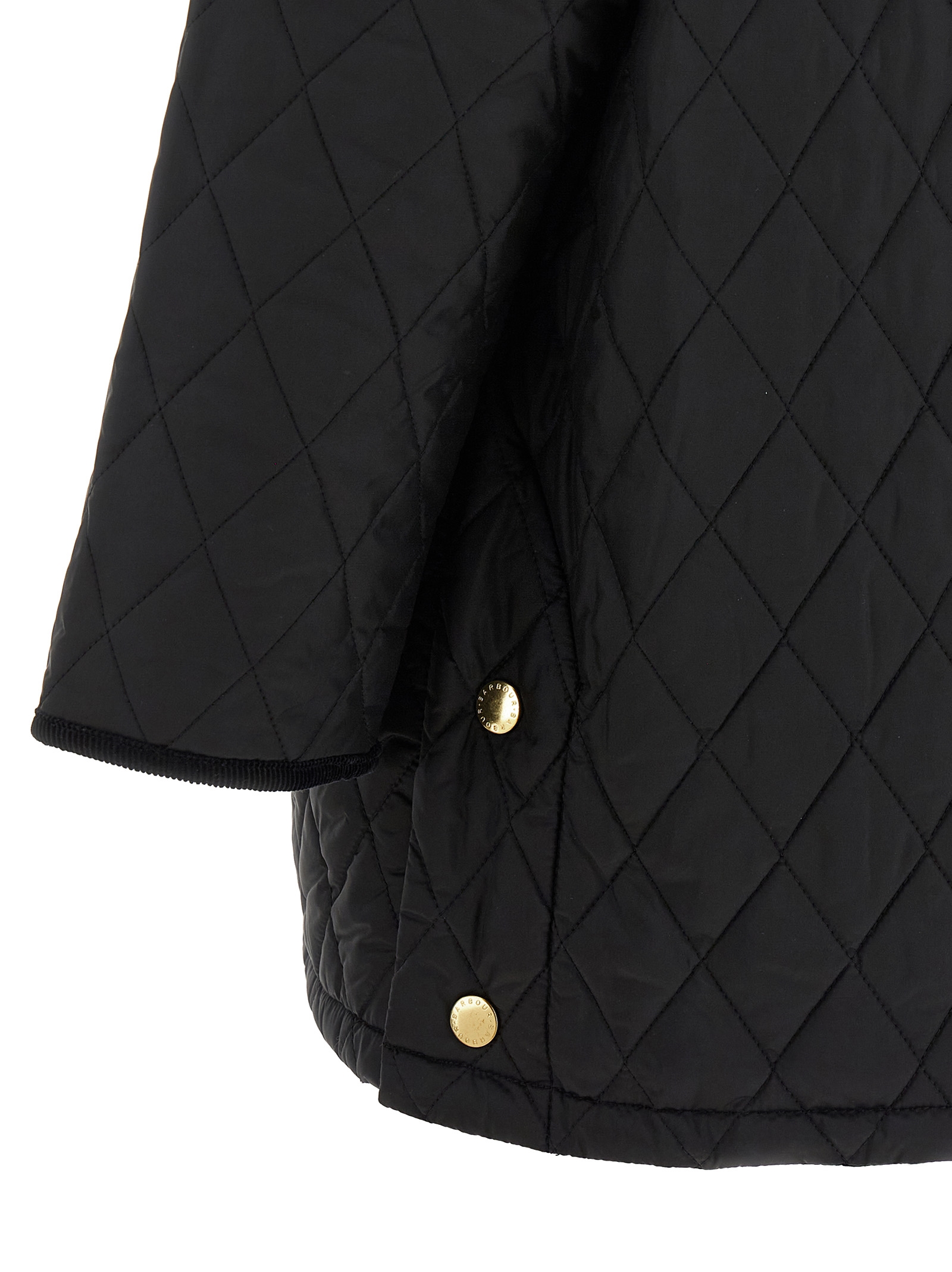 'Icons Modern' quilted nylon jacket with contrast corduroy details, collar, logo embroidery and front snap button closure, pockets, long sleeves, side slits with snap buttons, check print lining.