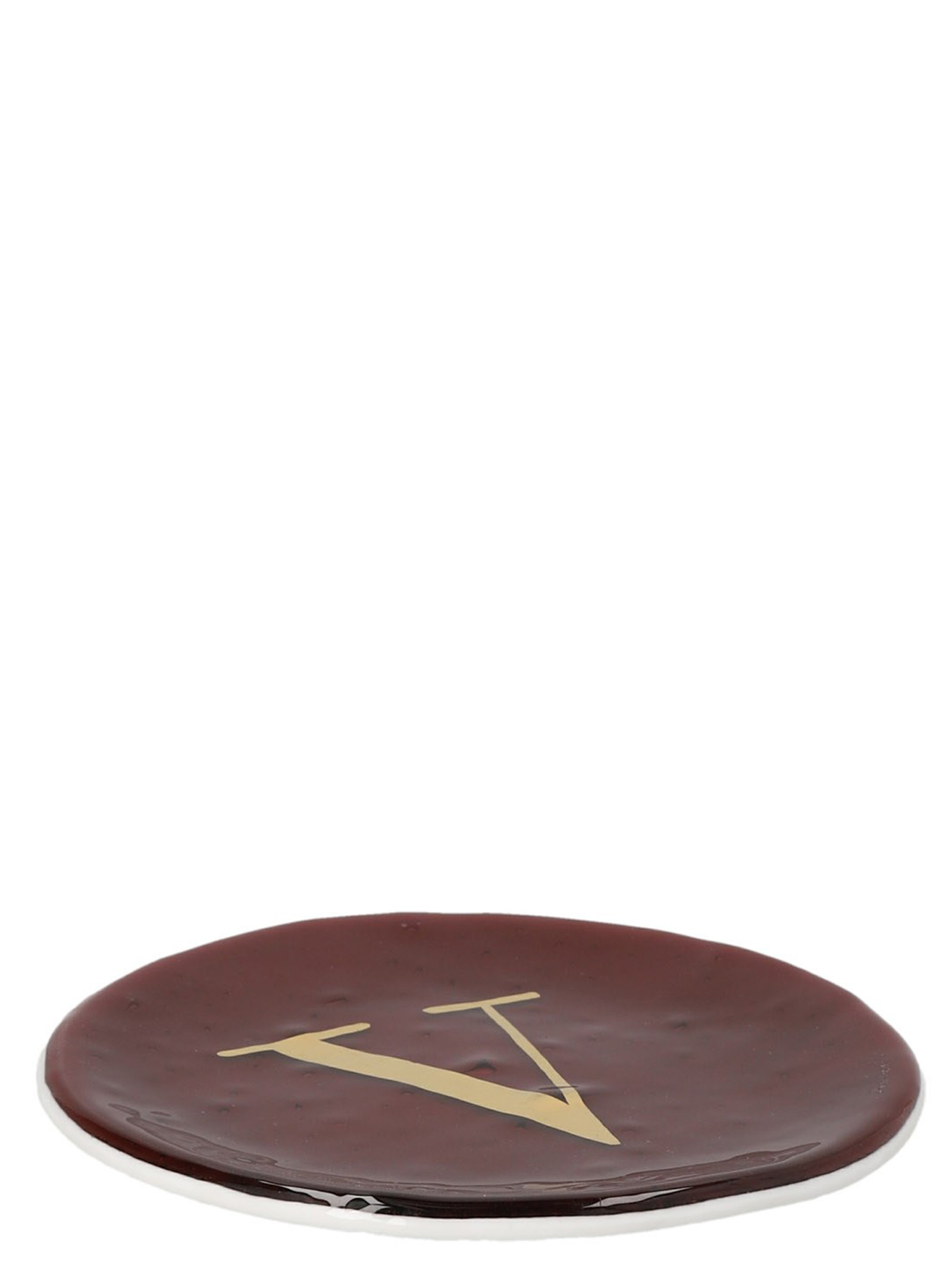 Glass side plate with hand-painted letter 'V' in mint gold.
