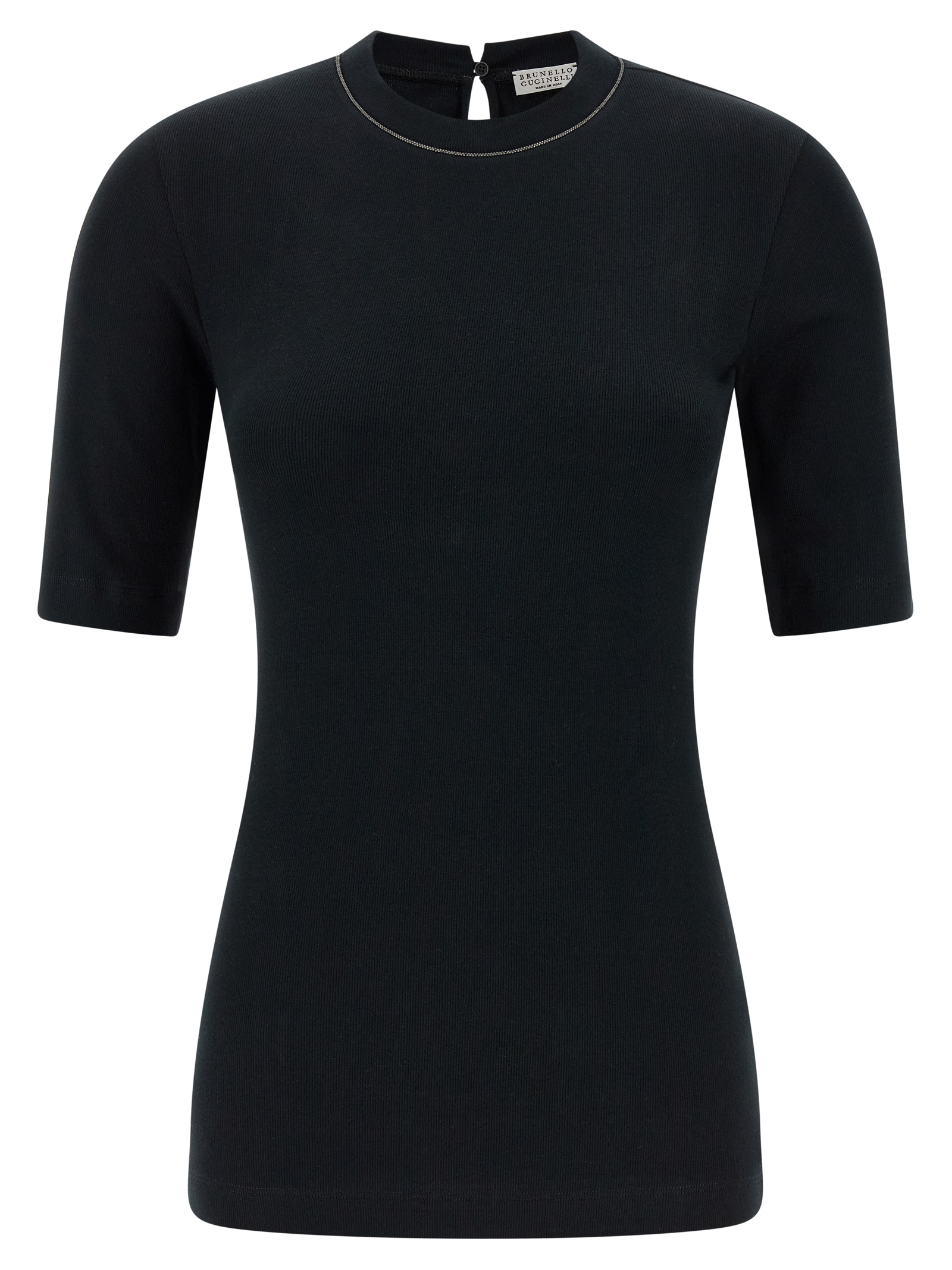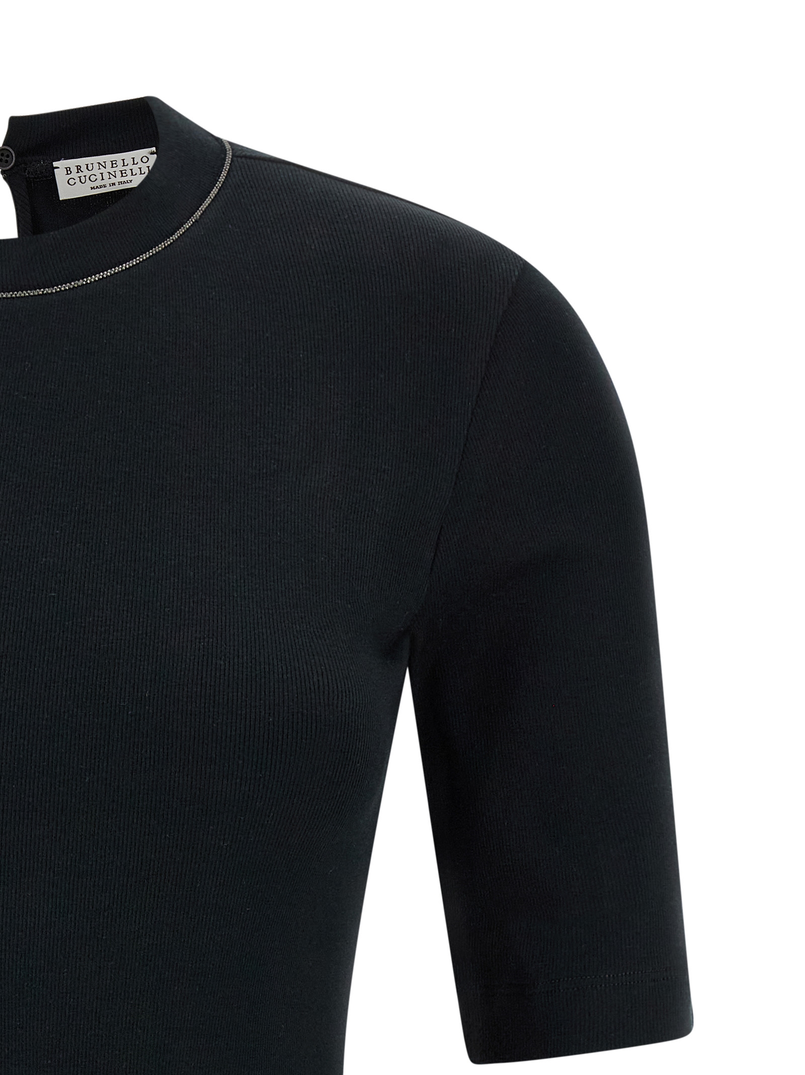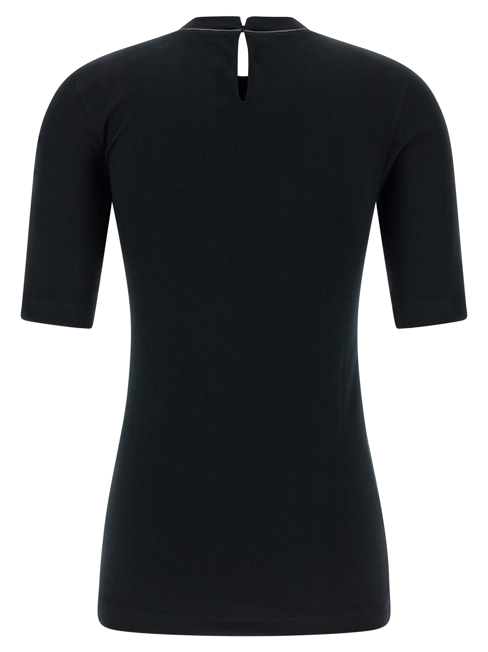 Ribbed stretch cotton jersey T-shirt with Monile detail, back button closure, and short sleeves.Өнімнің ерекшеліктері