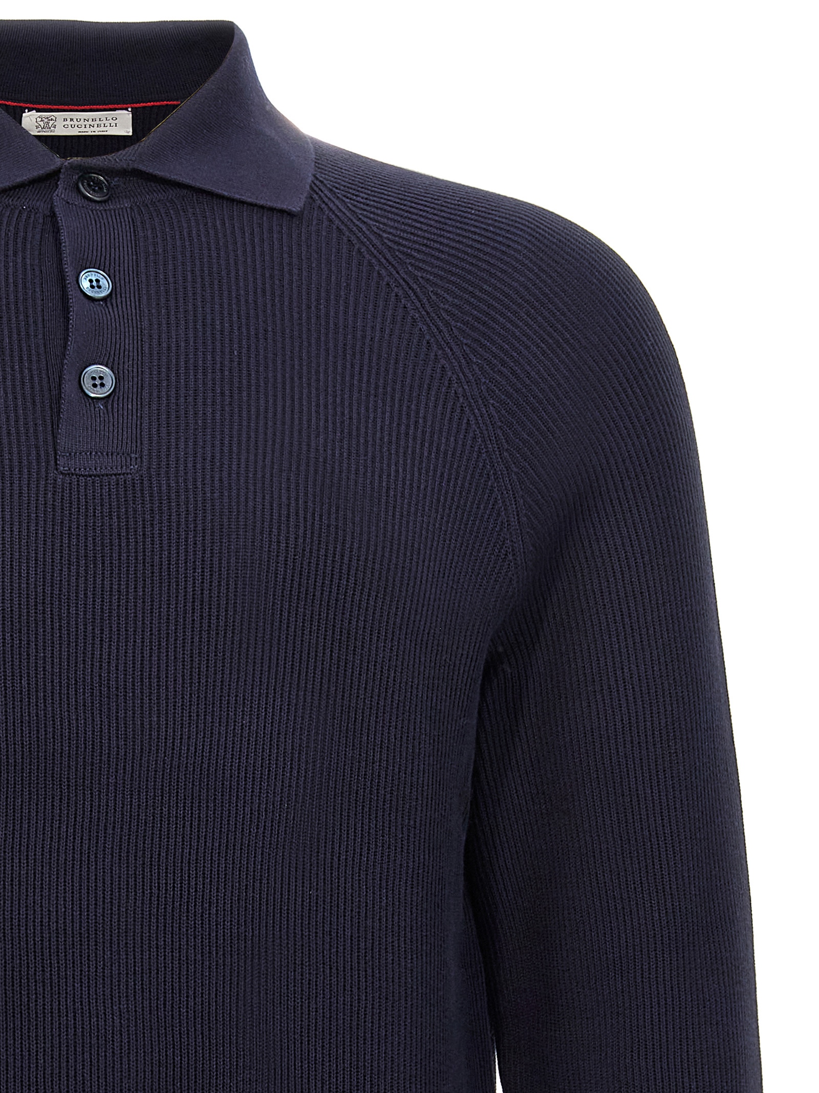 Ribbed cotton knit polo shirt with long cuffed sleeves.