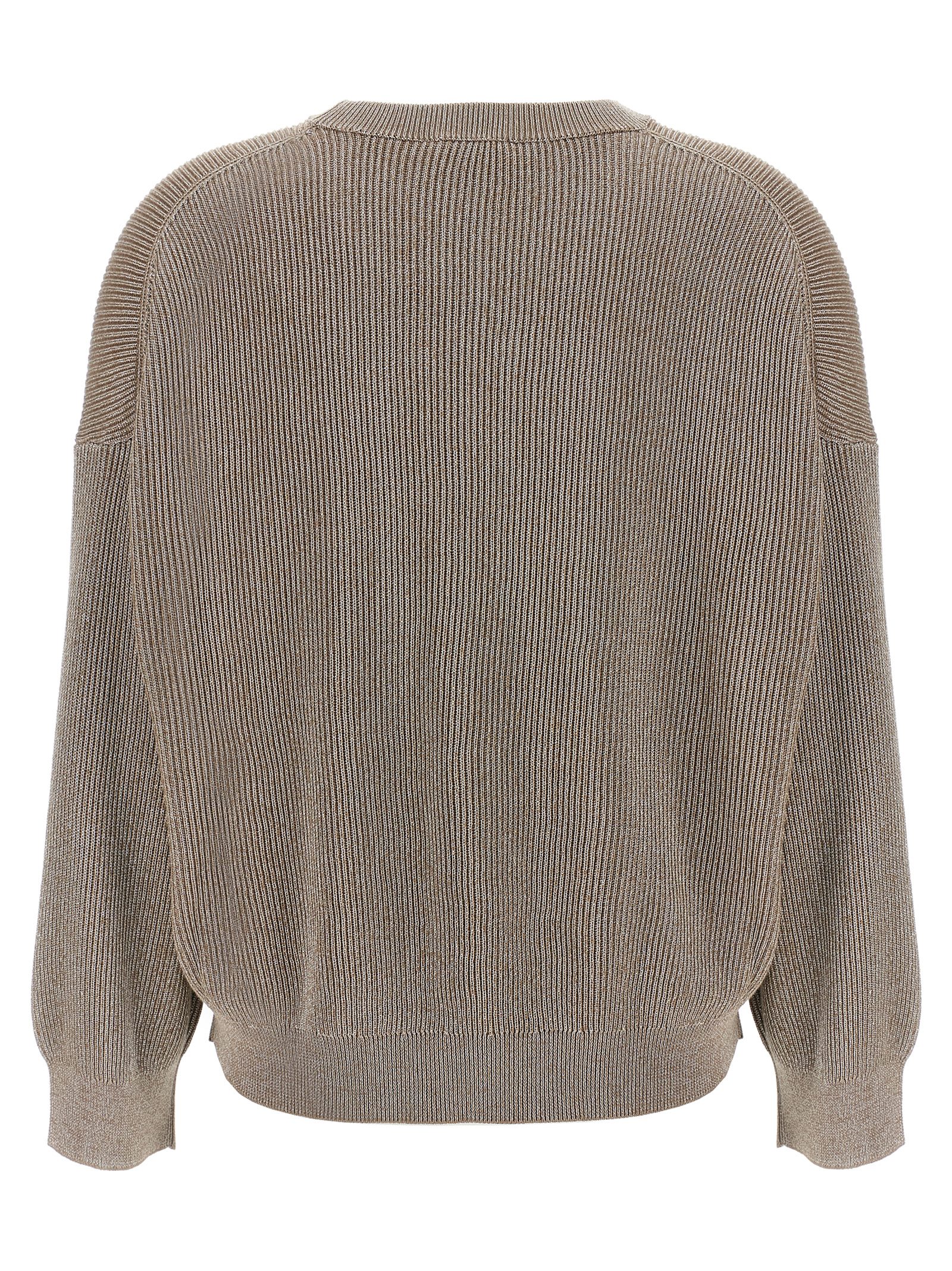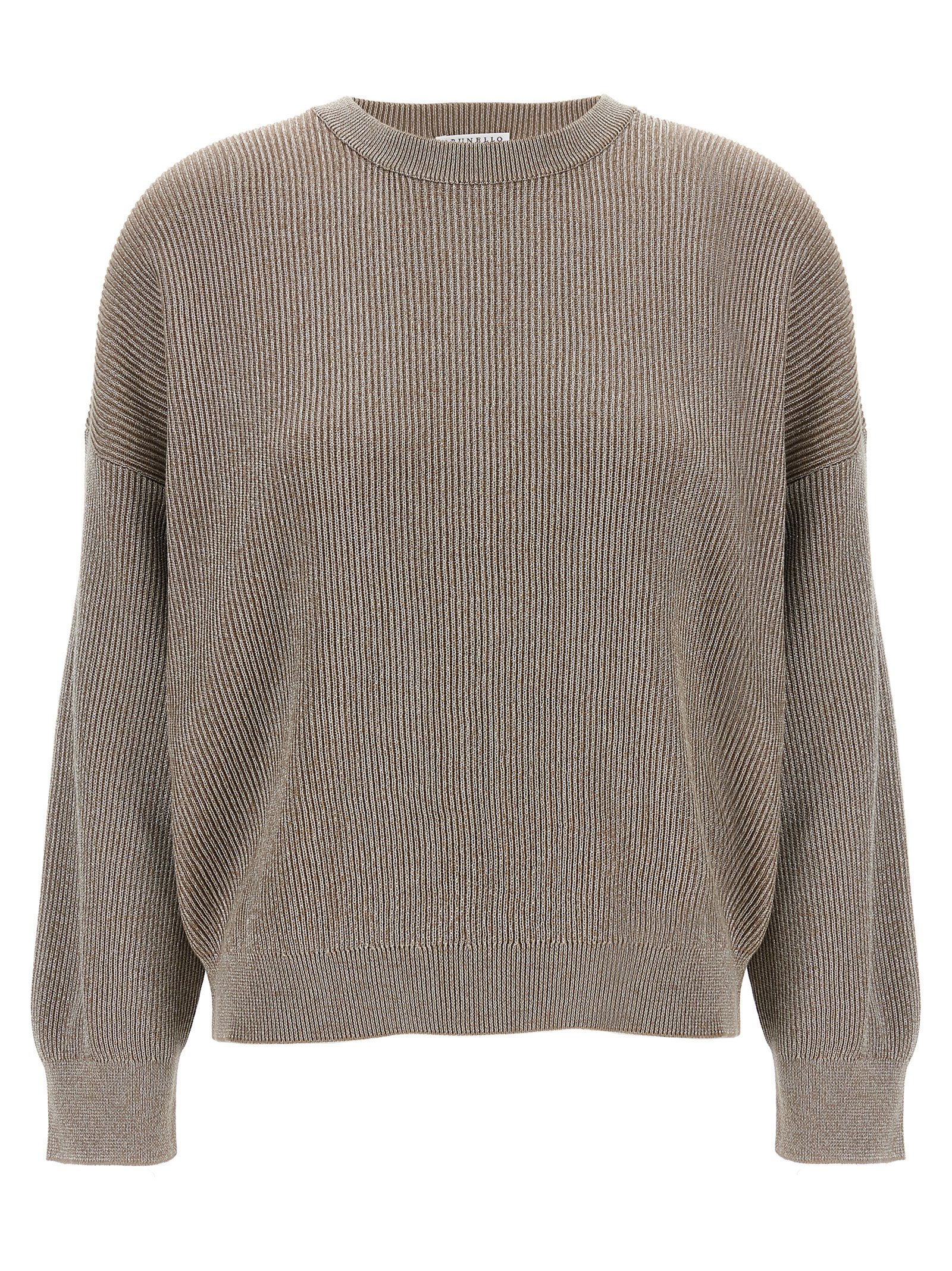 'Sparkling' cotton and viscose blend crocheted sweater with lamé threads, crew neck, long cuffed sleeves and dropped shoulders.Өнімнің ерекшеліктері