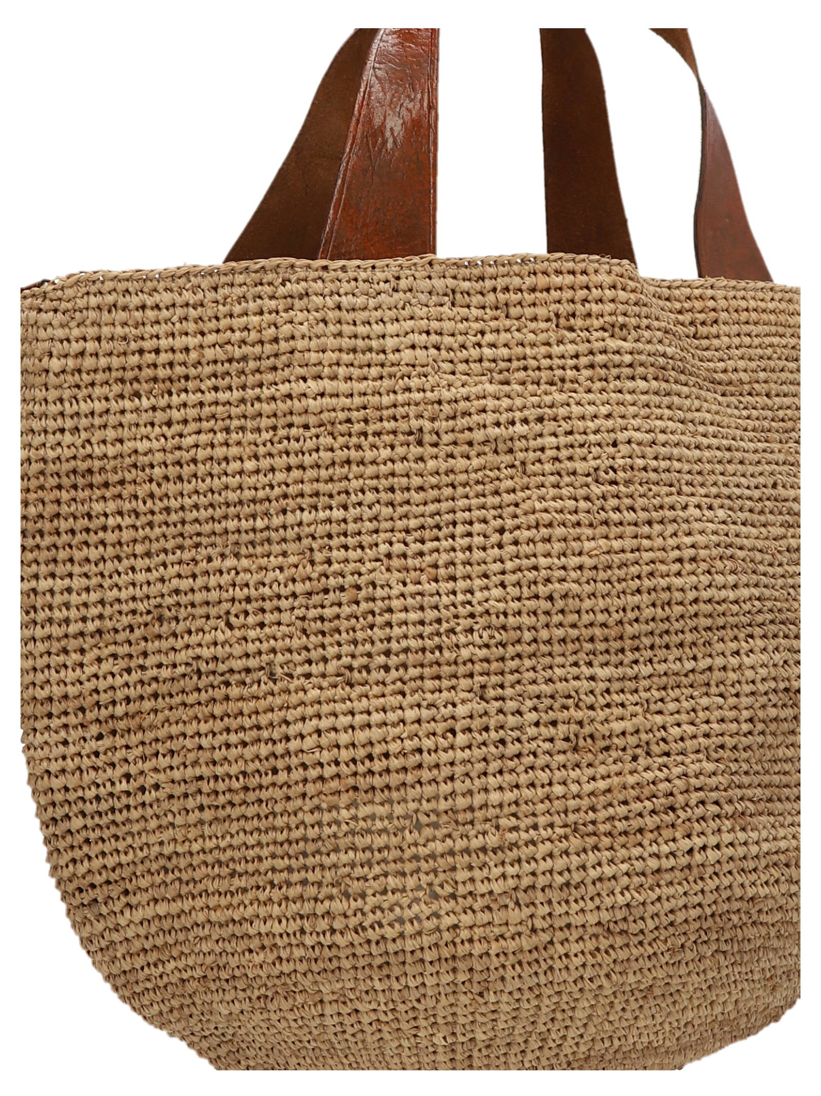 «Mirozy» тоқылған рафия сөмкесі, себет дизайны, жартылай мақтадан жасалған, баулы астар, қос бекітілген тұтқалар және көкөніспен өңделген зебу былғарысынан жасалған алынбалы иық бауы. Қолдан жасалған өнім, кез келген кемшіліктер бірегей сипаттамалар болып саналады.