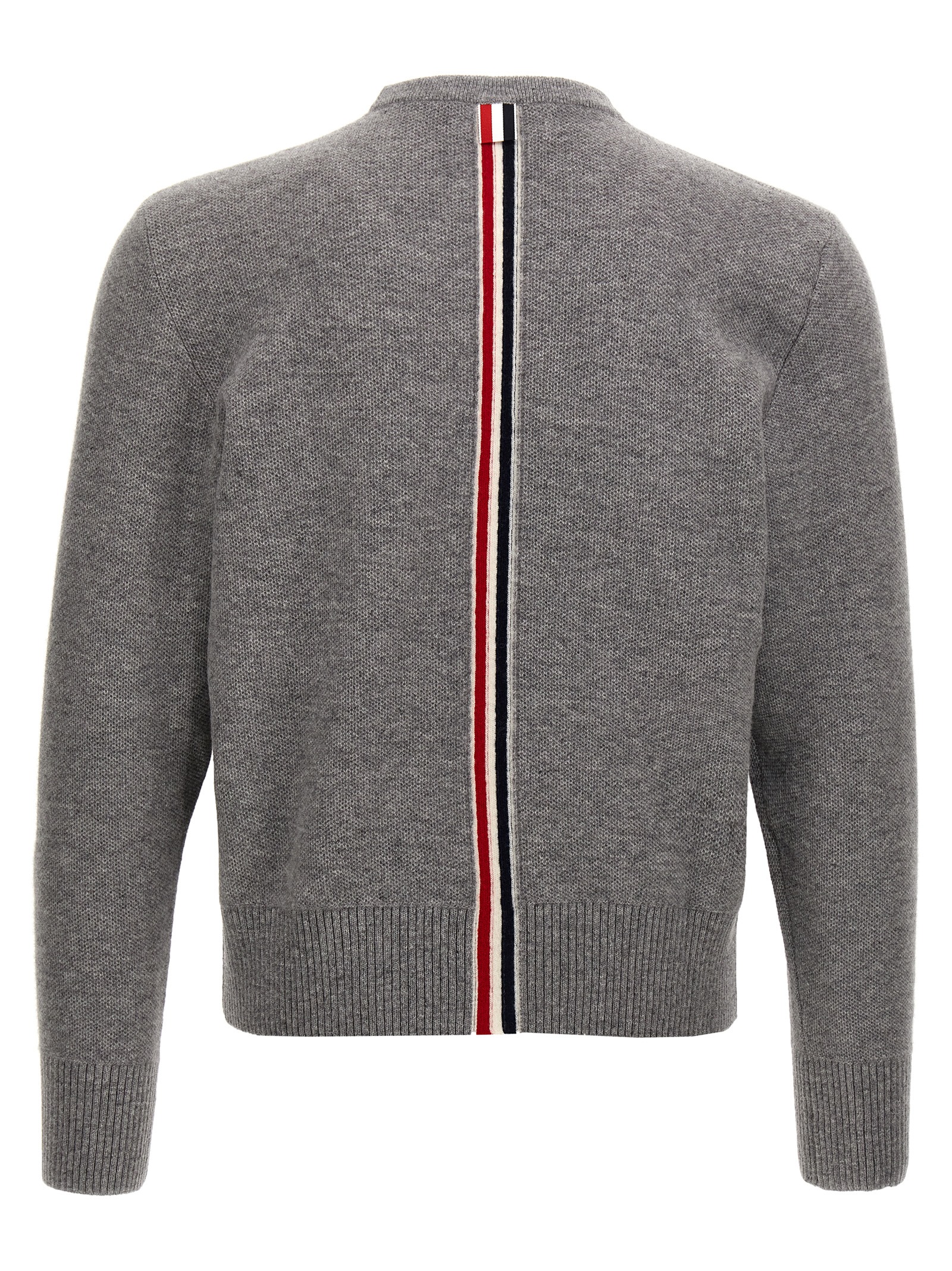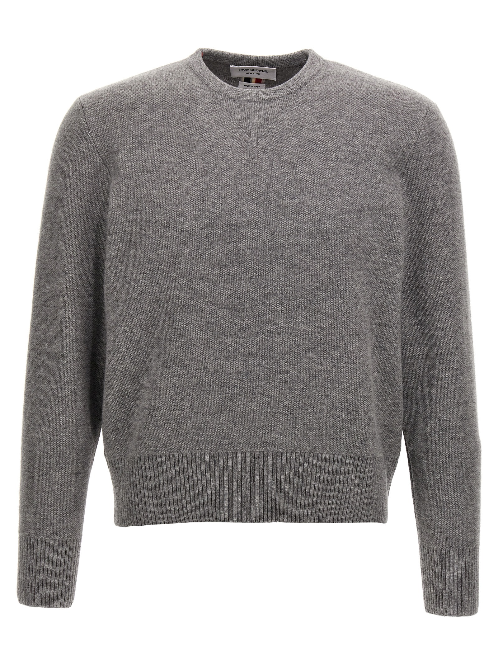 Washed piquet wool sweater with back 'RWB' intarsia, crew neck, long cuffed sleeves.