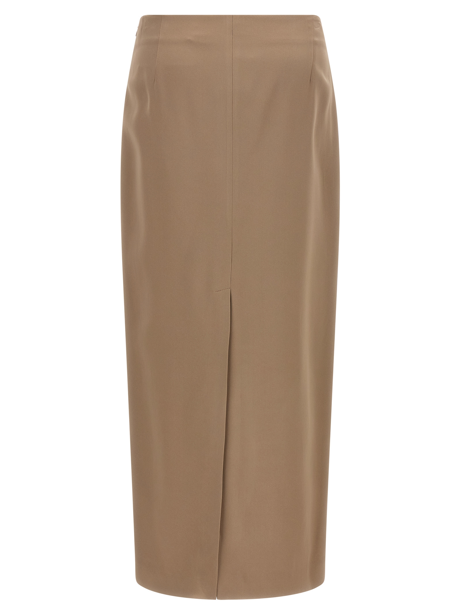 'Column Long' skirt in fluid cady satin, silk crepe blend lining, side zip closure, back split.