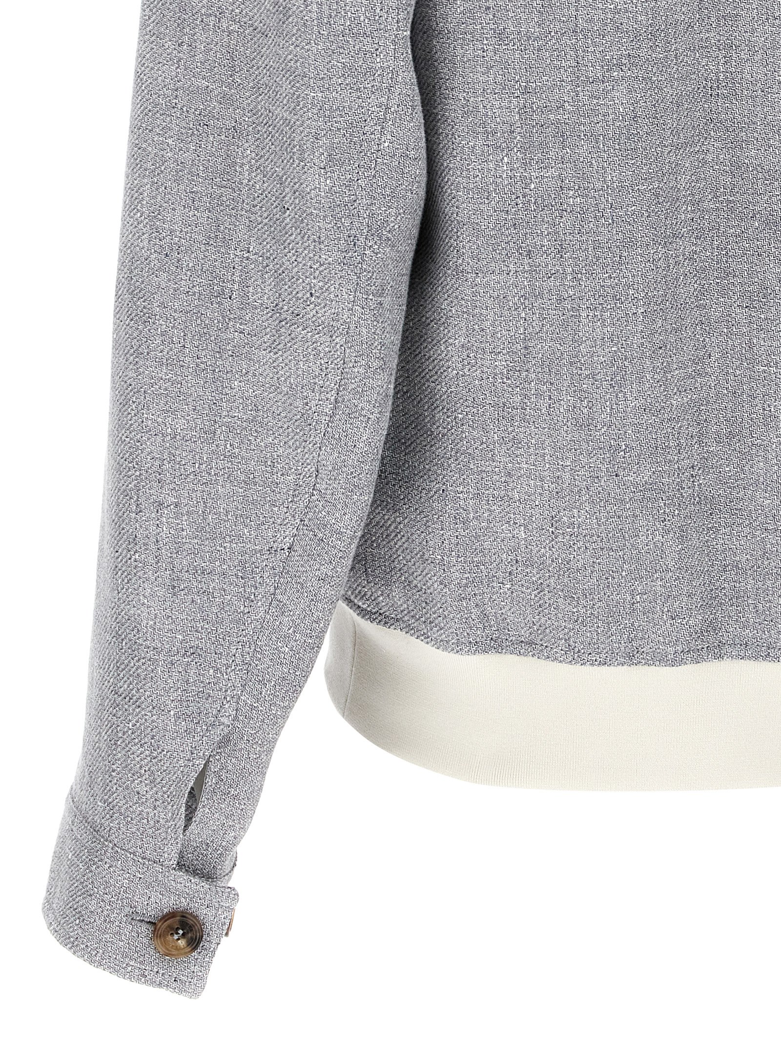 Diagonal jacket in wool and silk linen, collar, button closure, long sleeves with cuffs, pockets, and contrasting knitted hem.Өнімнің ерекшеліктері