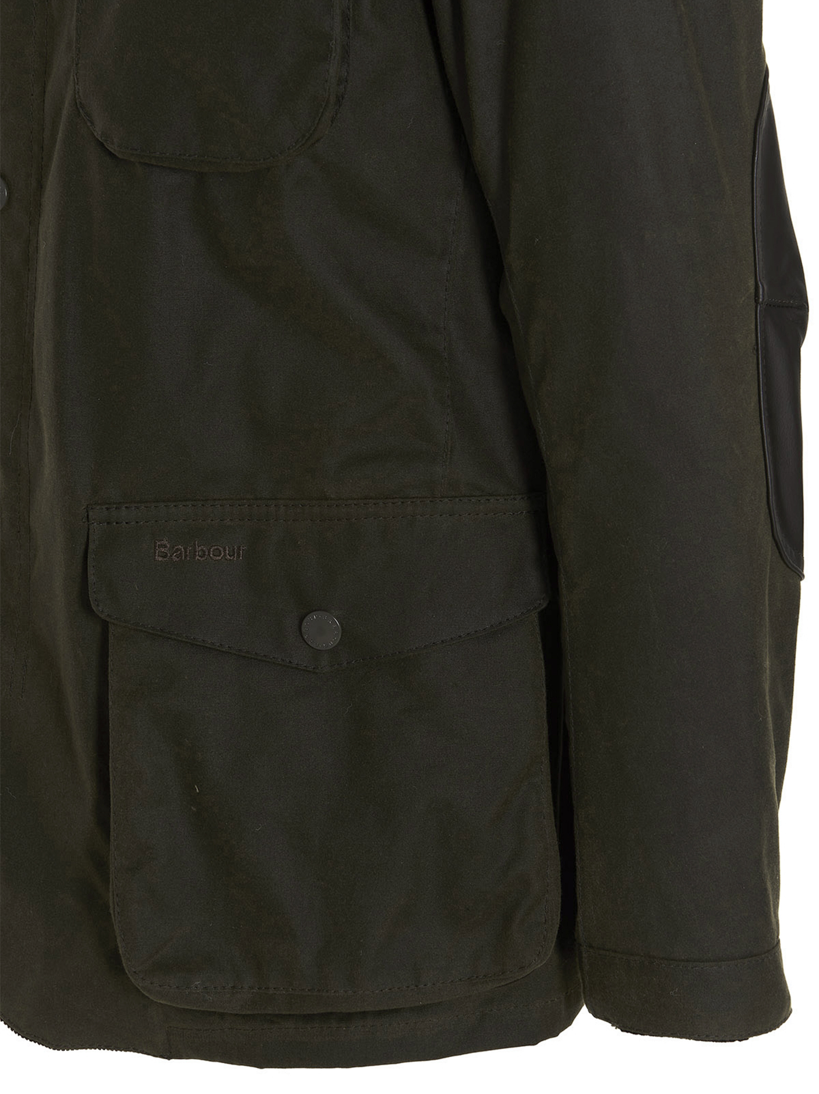Waxed cotton ‘Ogston’ jacket, check fabric lining, front snap button closure with quilted fabric insert, high collar and zipper closure, pockets, long sleeve with leather elbow patch, back vent.Өнімнің ерекшеліктері