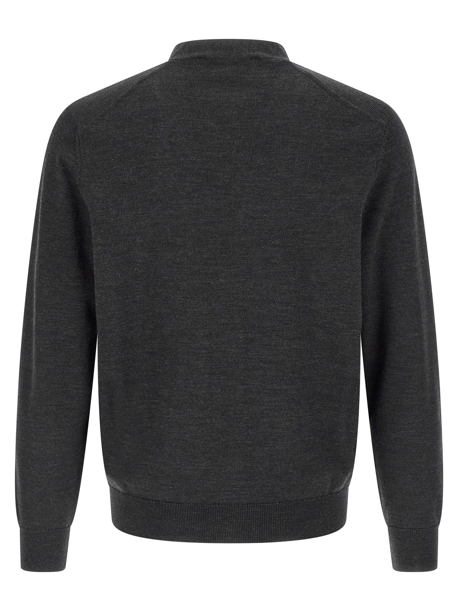 Жүн кардиган, алдыңғы жағы «Double Fox» жамауы, V-тәрізді жағасы, алдыңғы жағы түймелі жабыны, алдыңғы қалталар, ұзын жеңді қалталар.