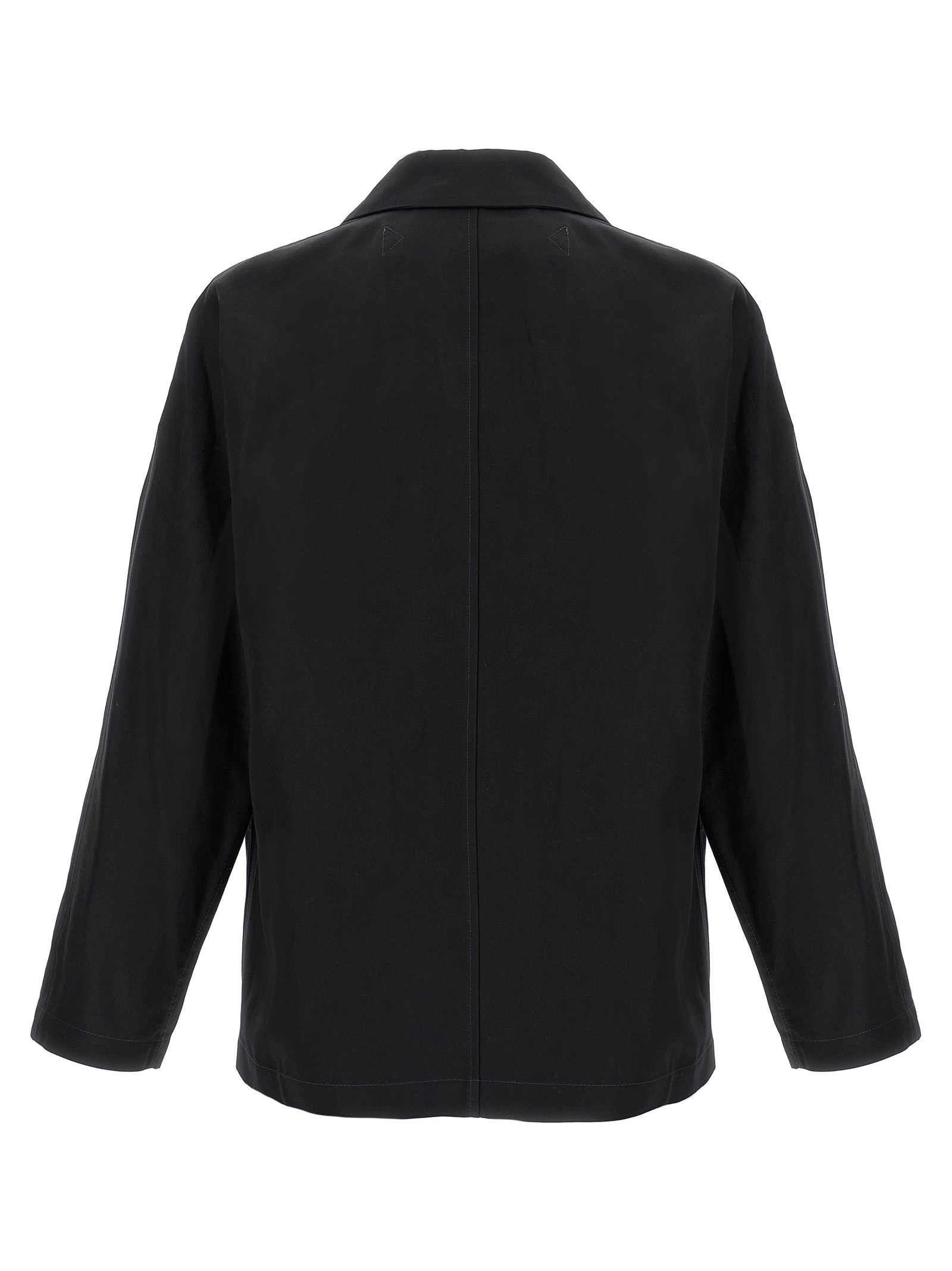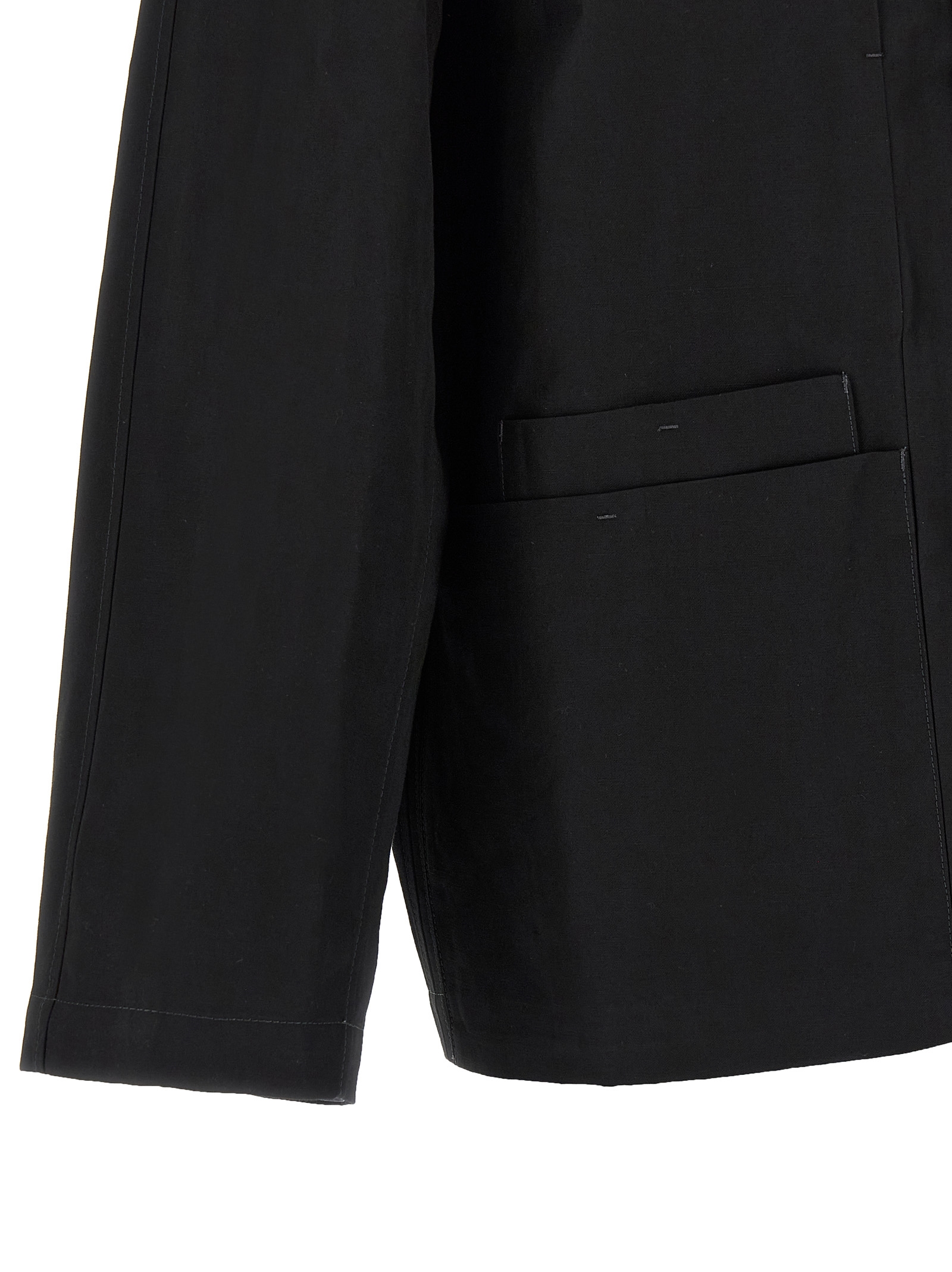 'Boxy SB Workwear' jacket in cotton and linen gabardine, unlined, front button closure, collar, pockets, long sleeves with dropped shoulders.