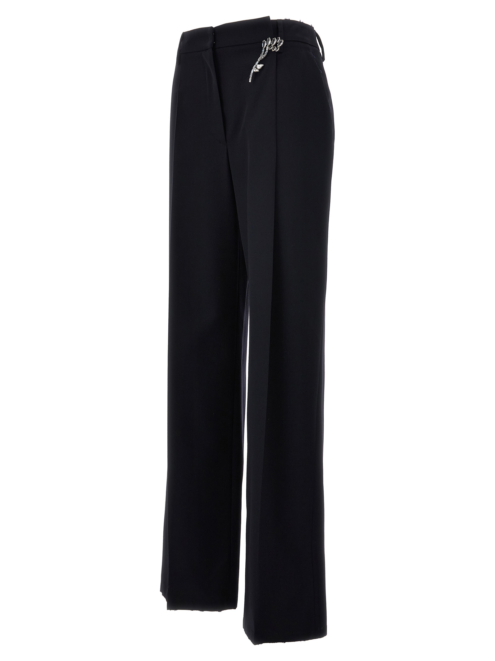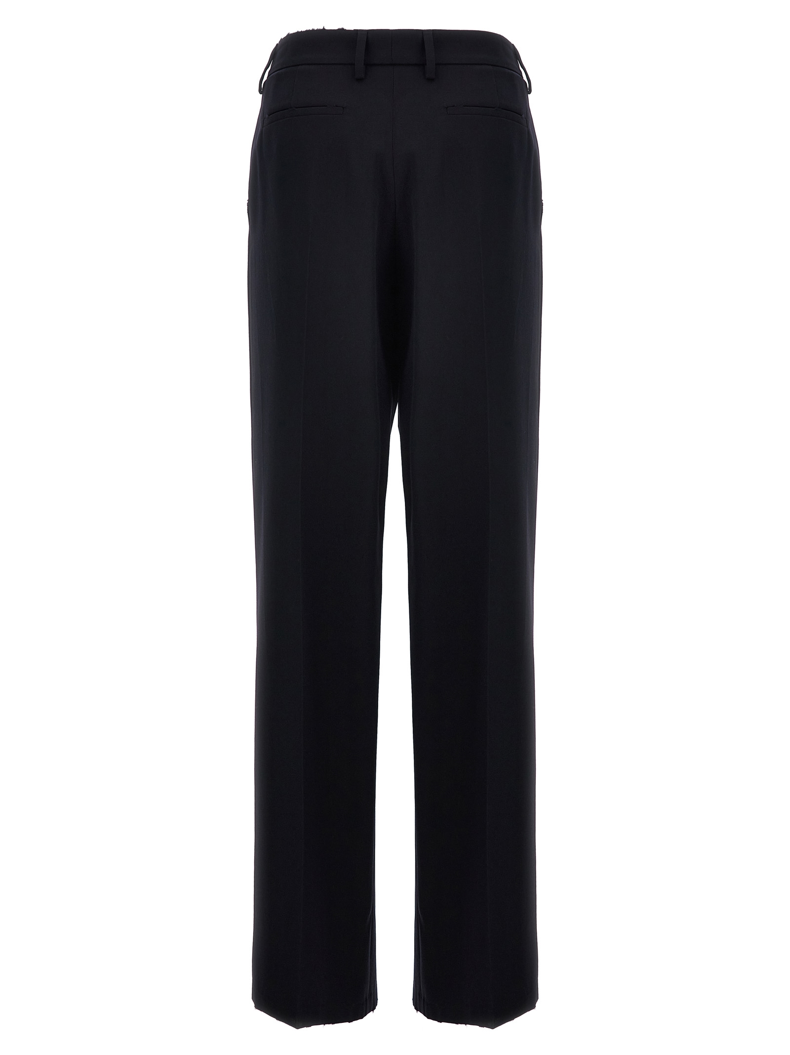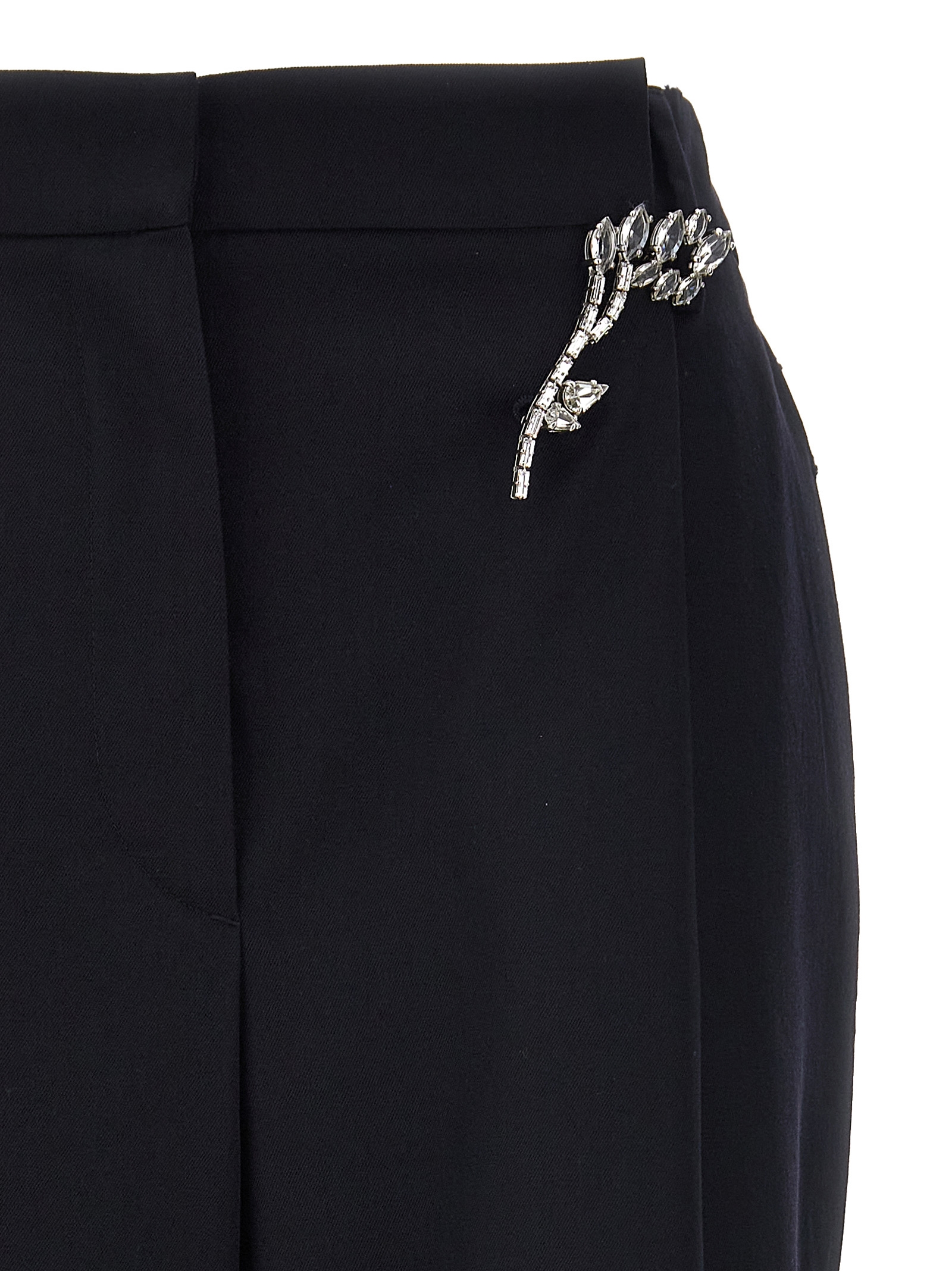 Wool gabardine pants, hook and button zip closure, pockets, straight leg with stretched crease and used-effect hem, jewel brooch detail.Өнімнің ерекшеліктері
