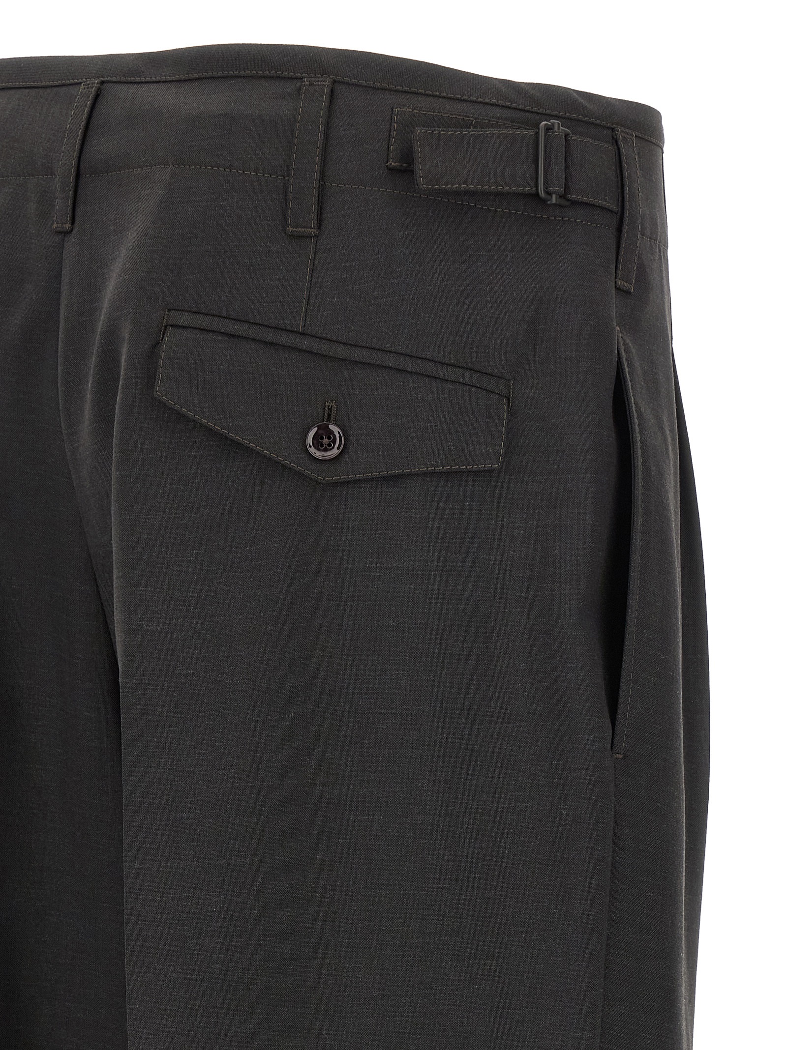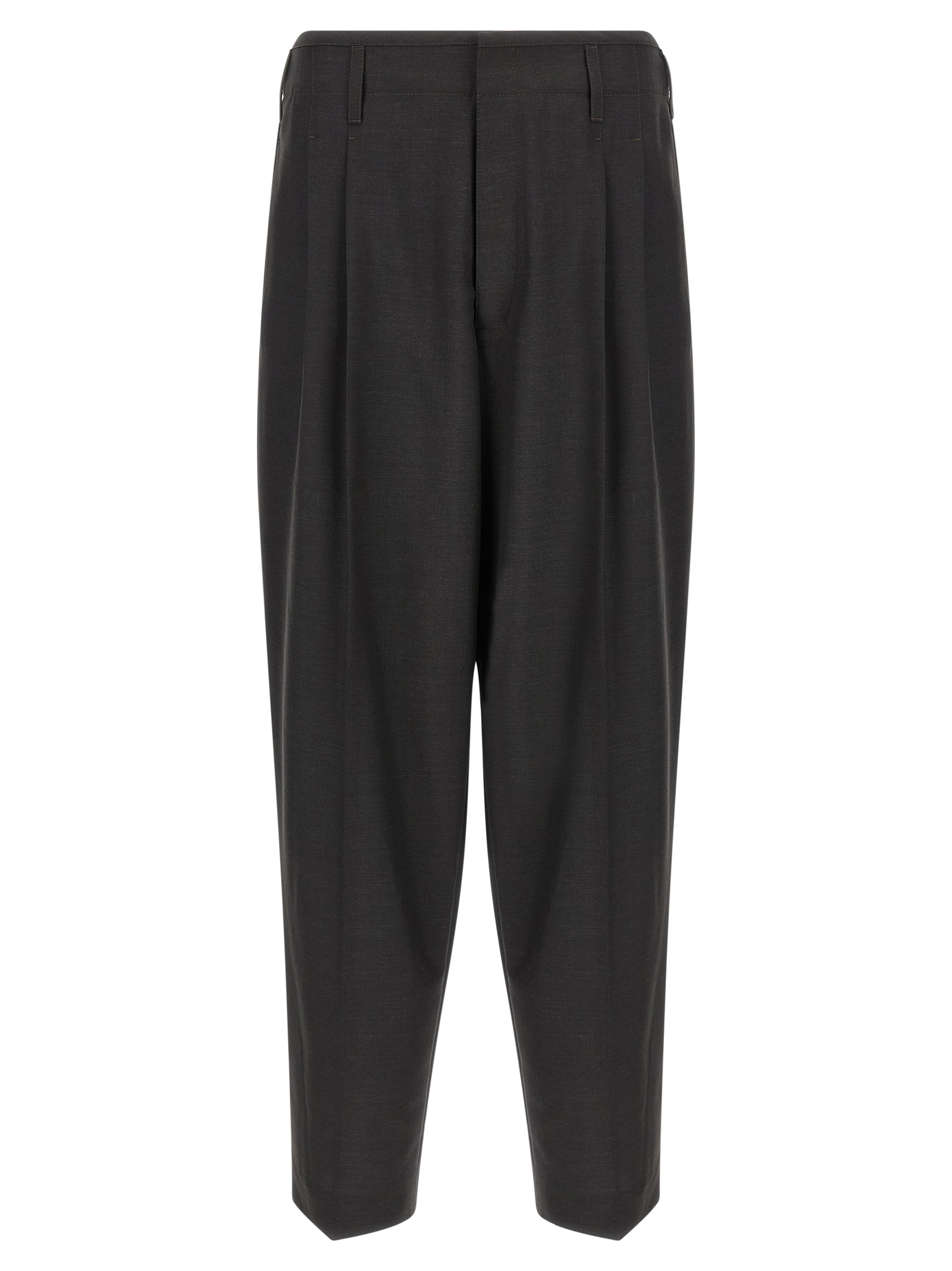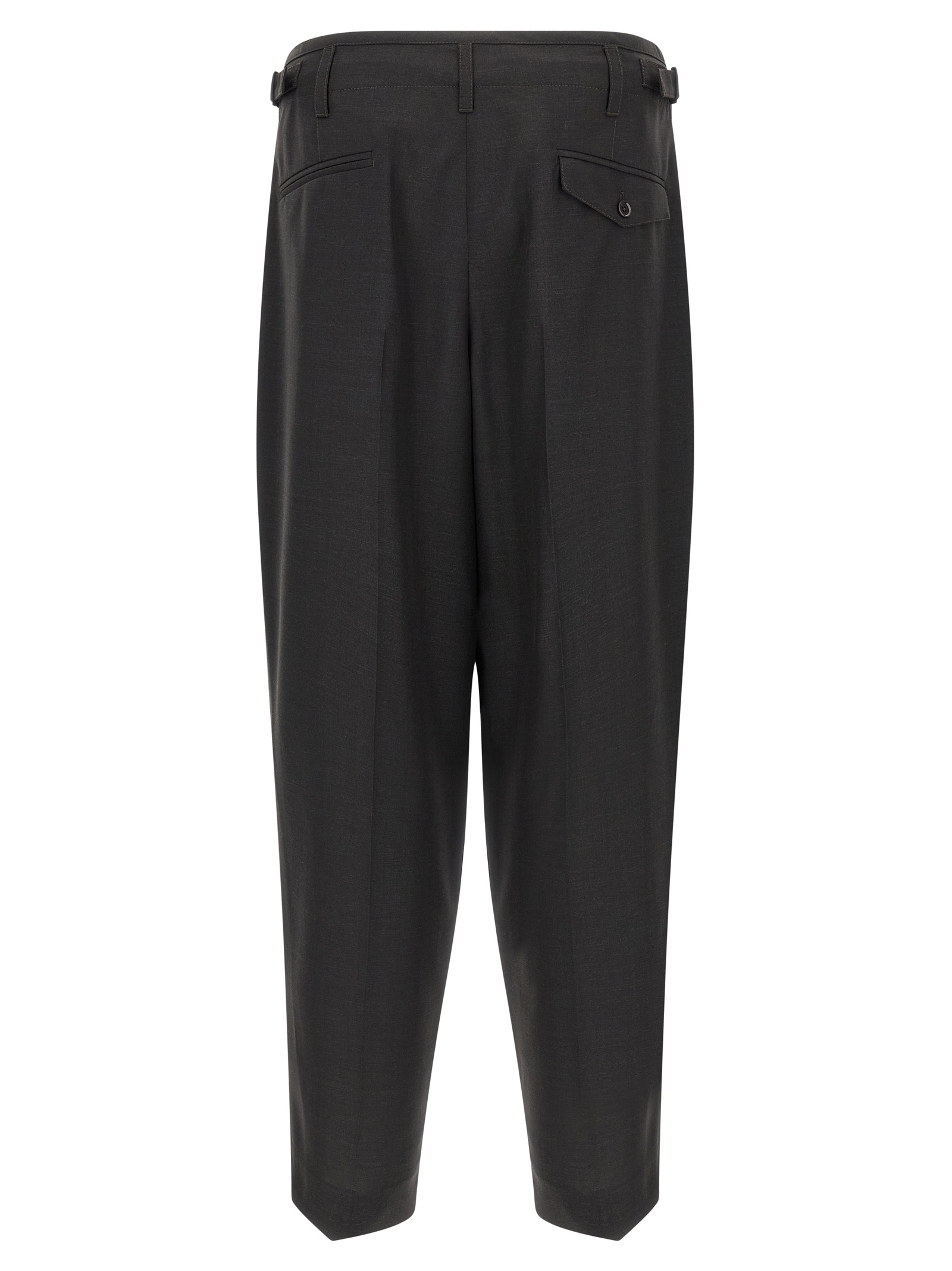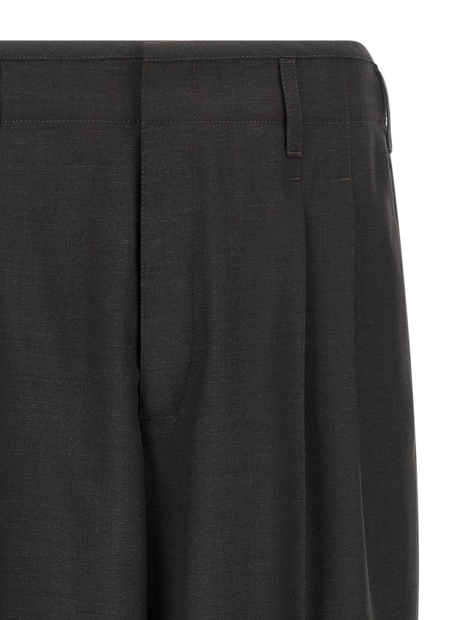 'Pleated' trousers in tropical wool blend suiting fabric characterized by a mottled appearance and a dense and soft hand, pins, stretched pleat, waistband and tone-on-tone bias edge, front button and hook closure, pockets, high waist.