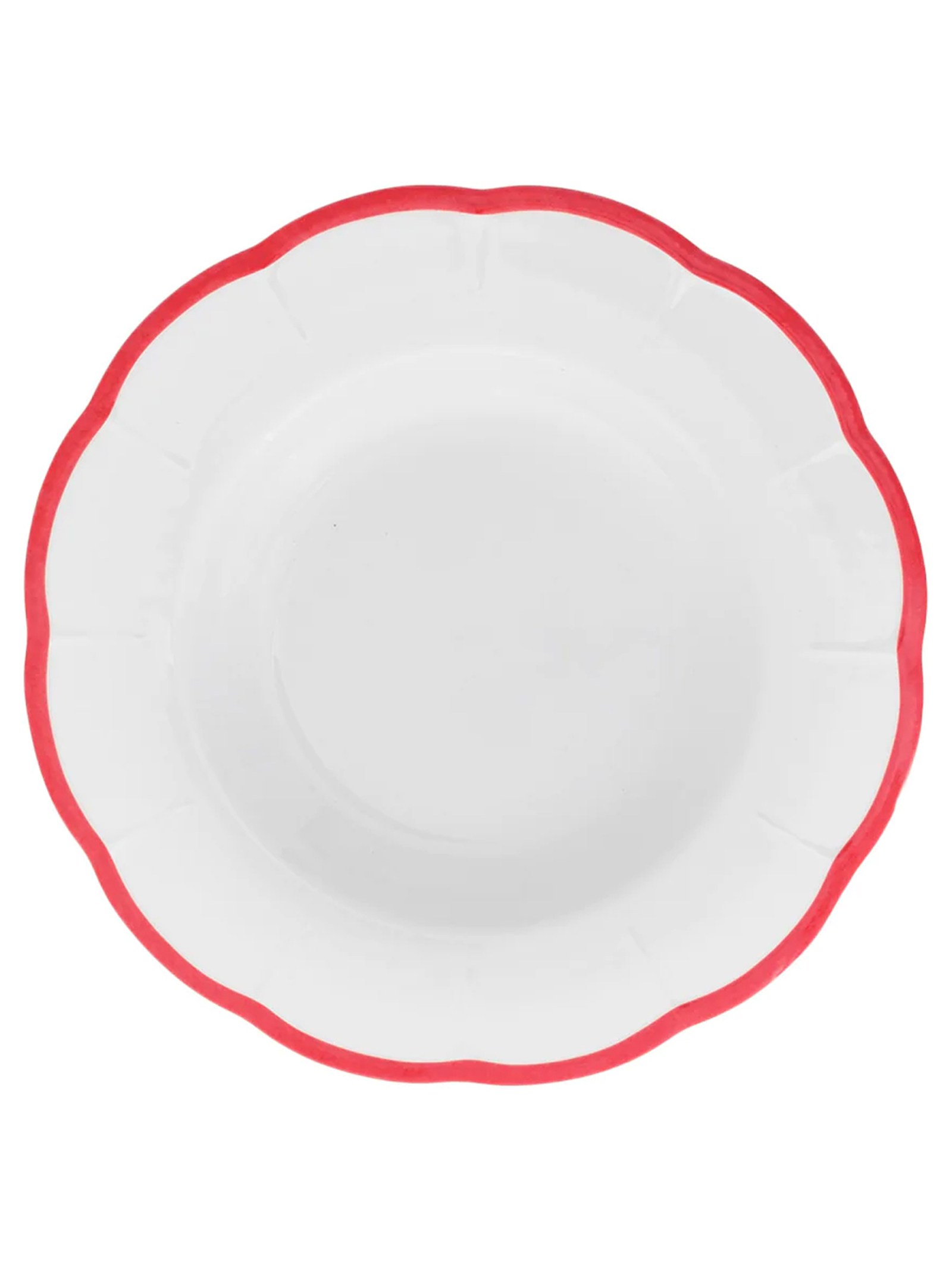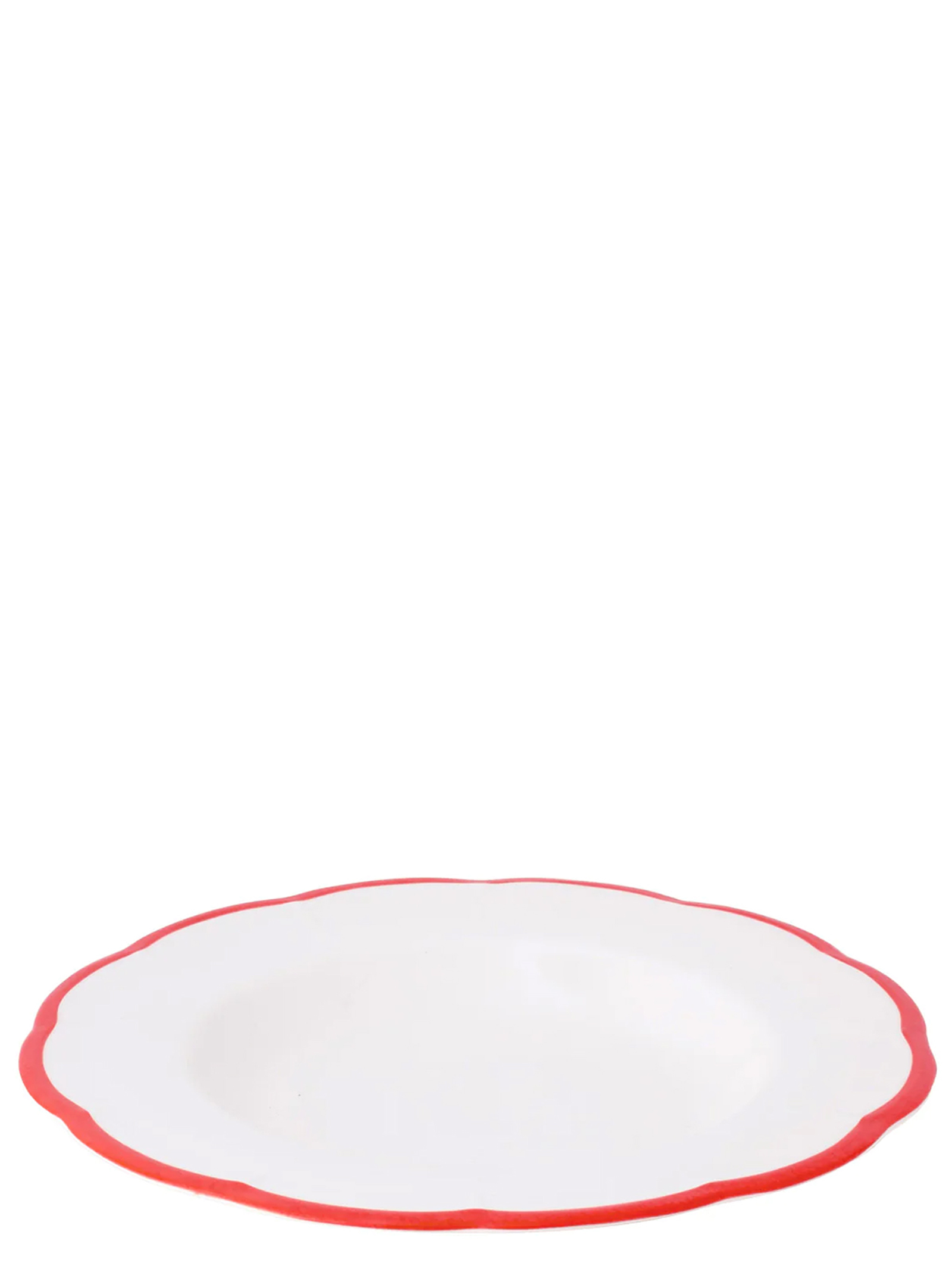 'Petalo' soup plate, white ironstone material with red scalloped edge. Suitable for dishwasher, suitable for microwave.Өнімнің ерекшеліктері
