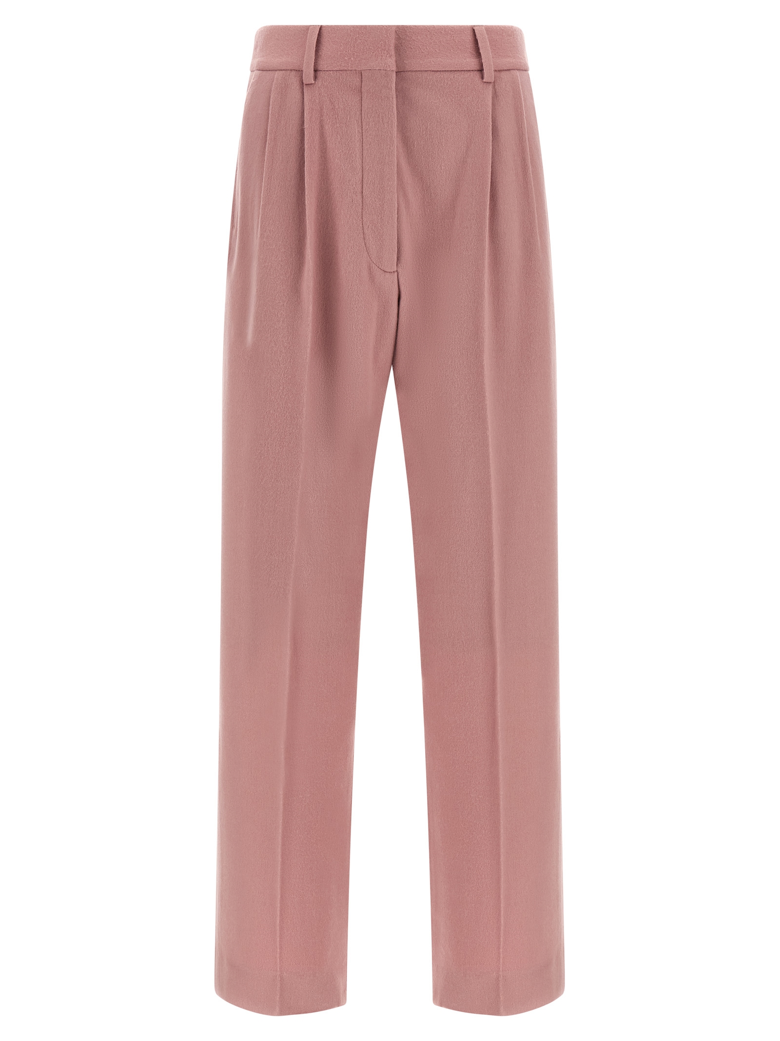 'Mystere Fox' wool and cashmere blend pants, high waist with pleats, straight leg, zip and hook closure, pockets.