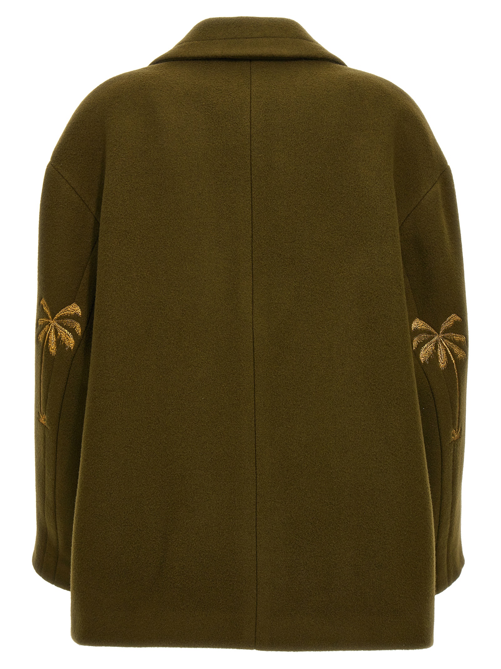 Double-breasted wool coat with gold embroidery on the sleeves of a palm tree.