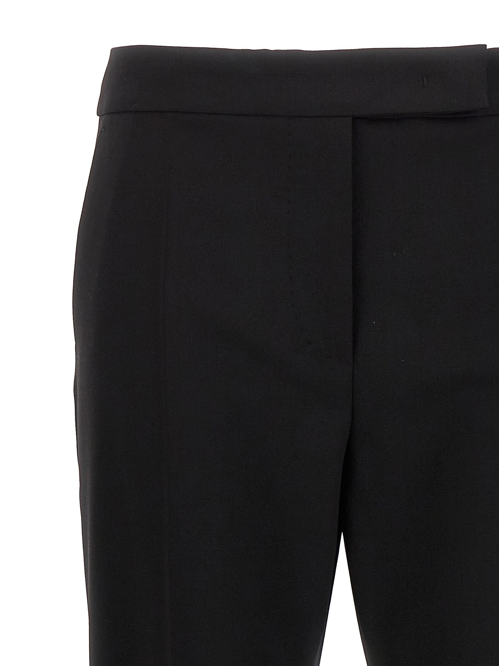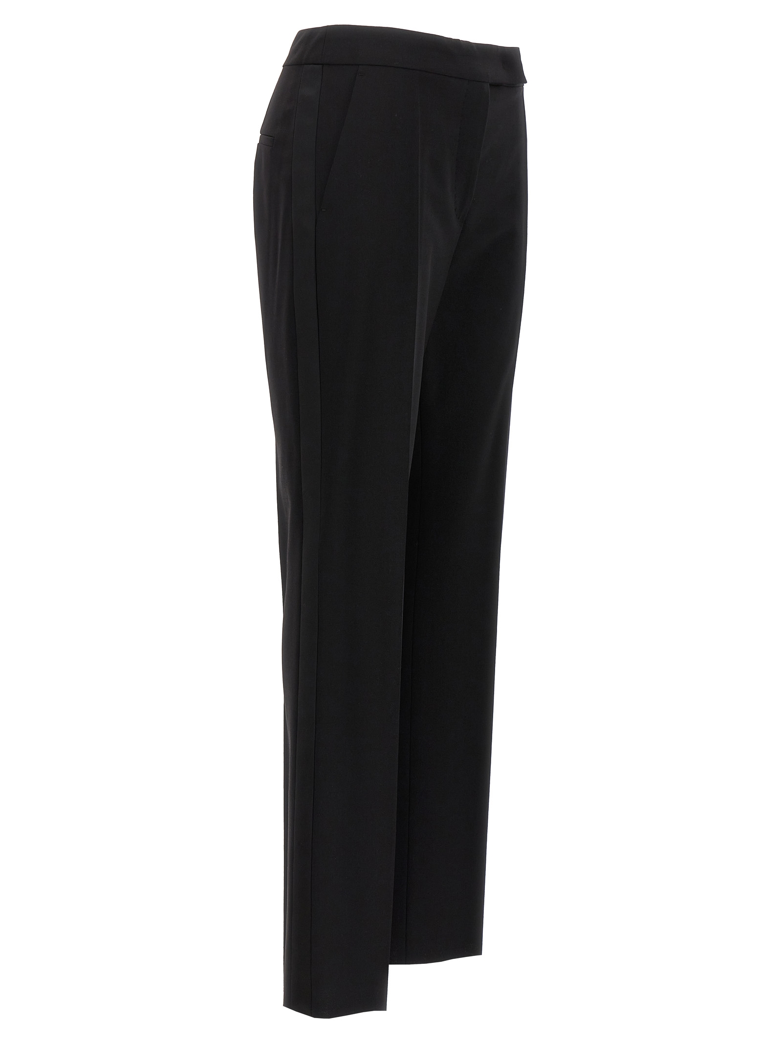 'Rino' wool blend pants with tone-on-tone satin side bands, hook and button zip closure, pockets.Өнімнің ерекшеліктері