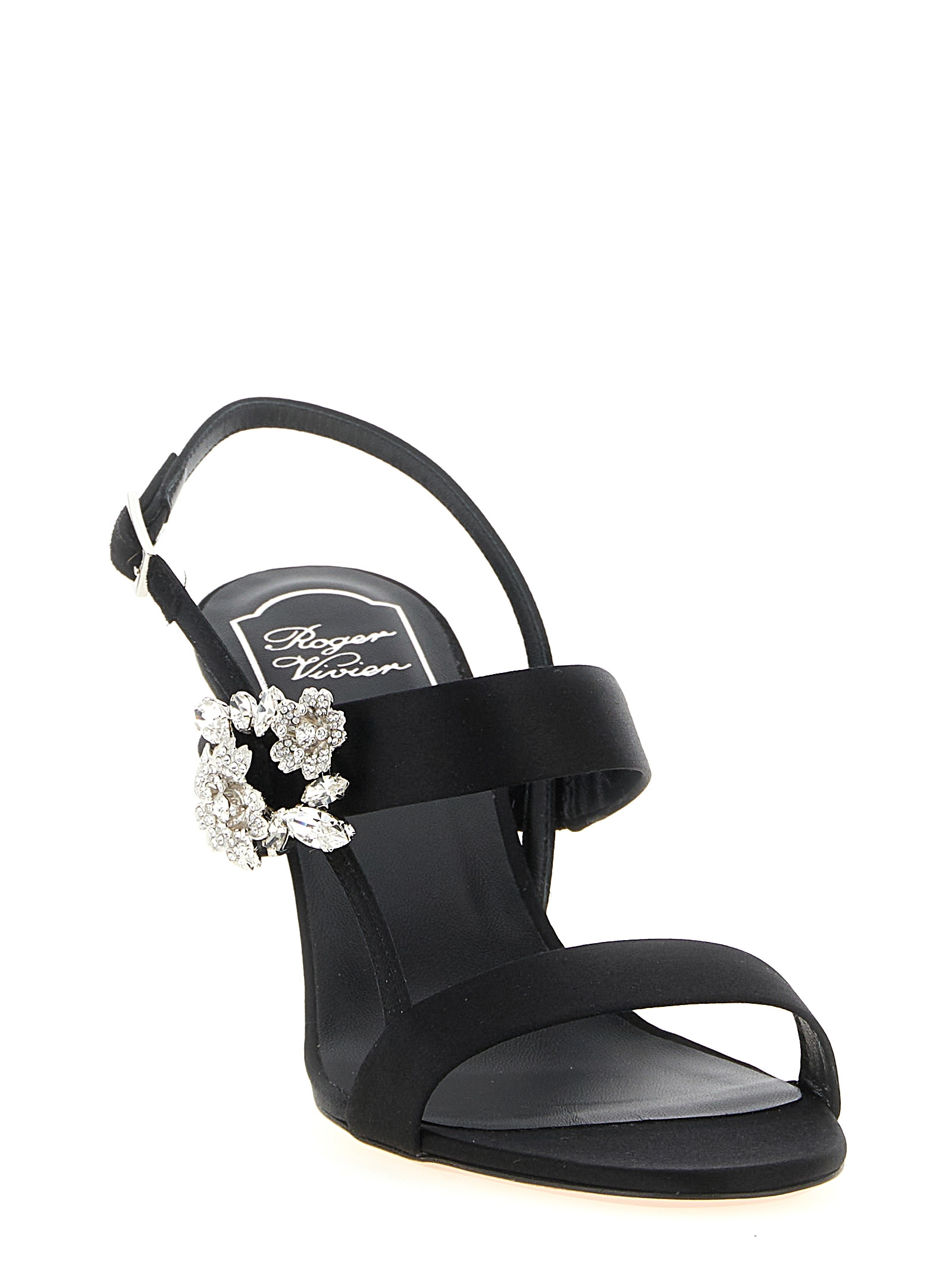 'Mini Bouquet' satin sandals, jewel buckle with crystal flowers, adjustable strap, slim lacquered heel, leather sole.Тауар сипаттамалары