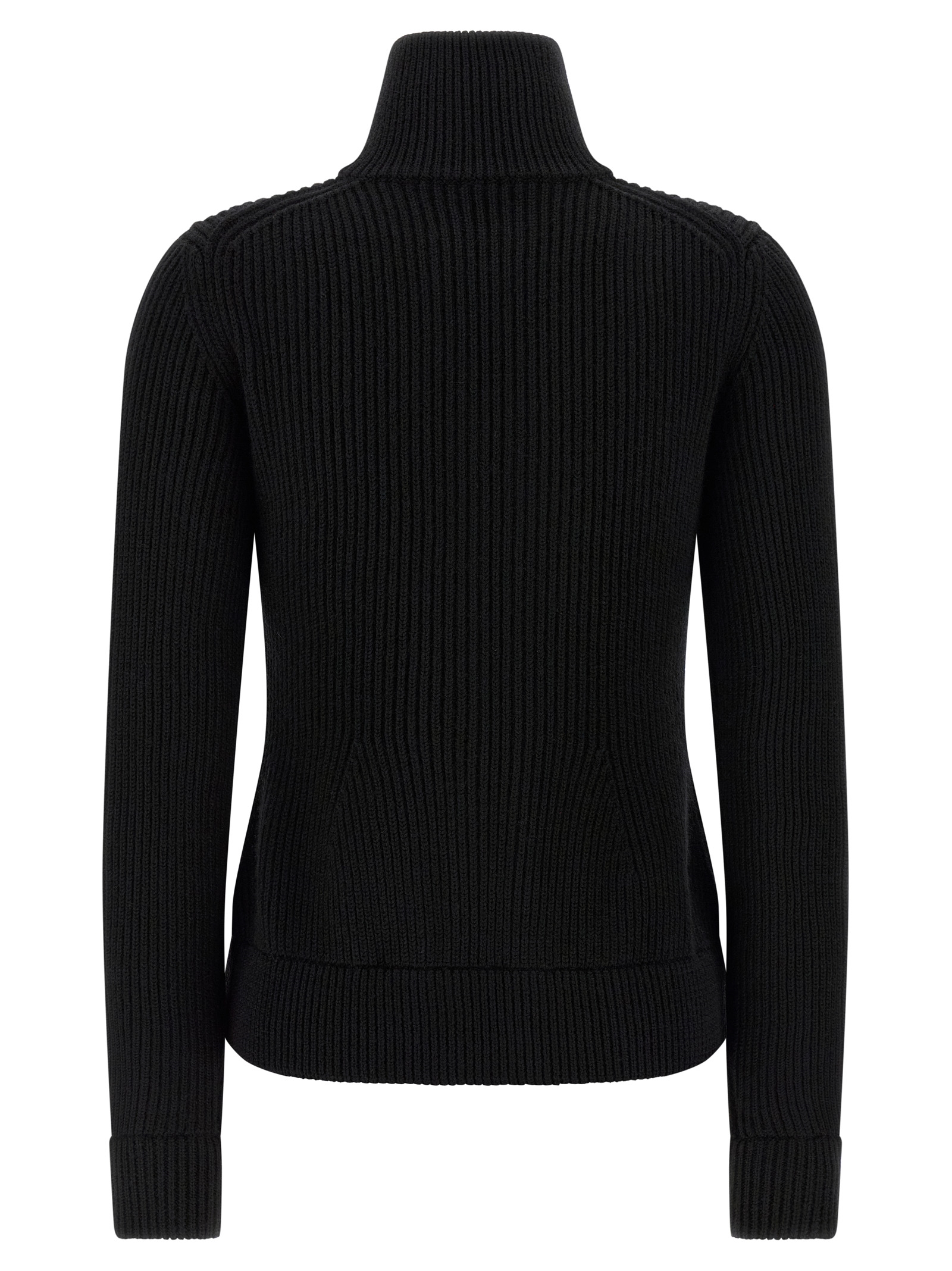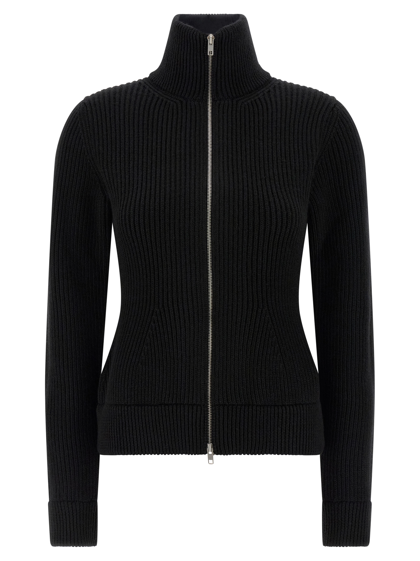 Knitted virgin wool cardigan, high neck, front zip closure, long cuffed sleeves, back 'Four stitches'.Өнімнің ерекшеліктері