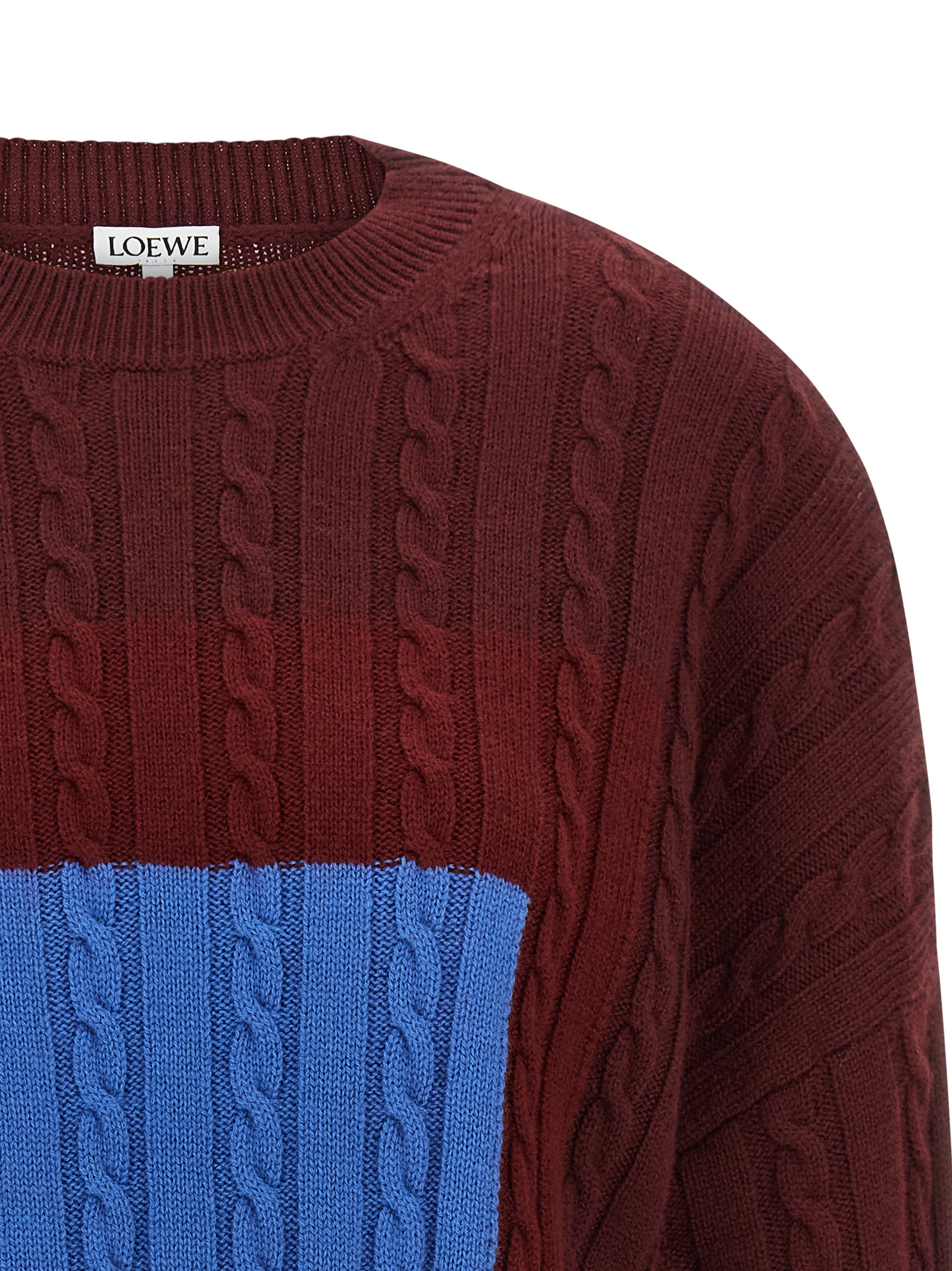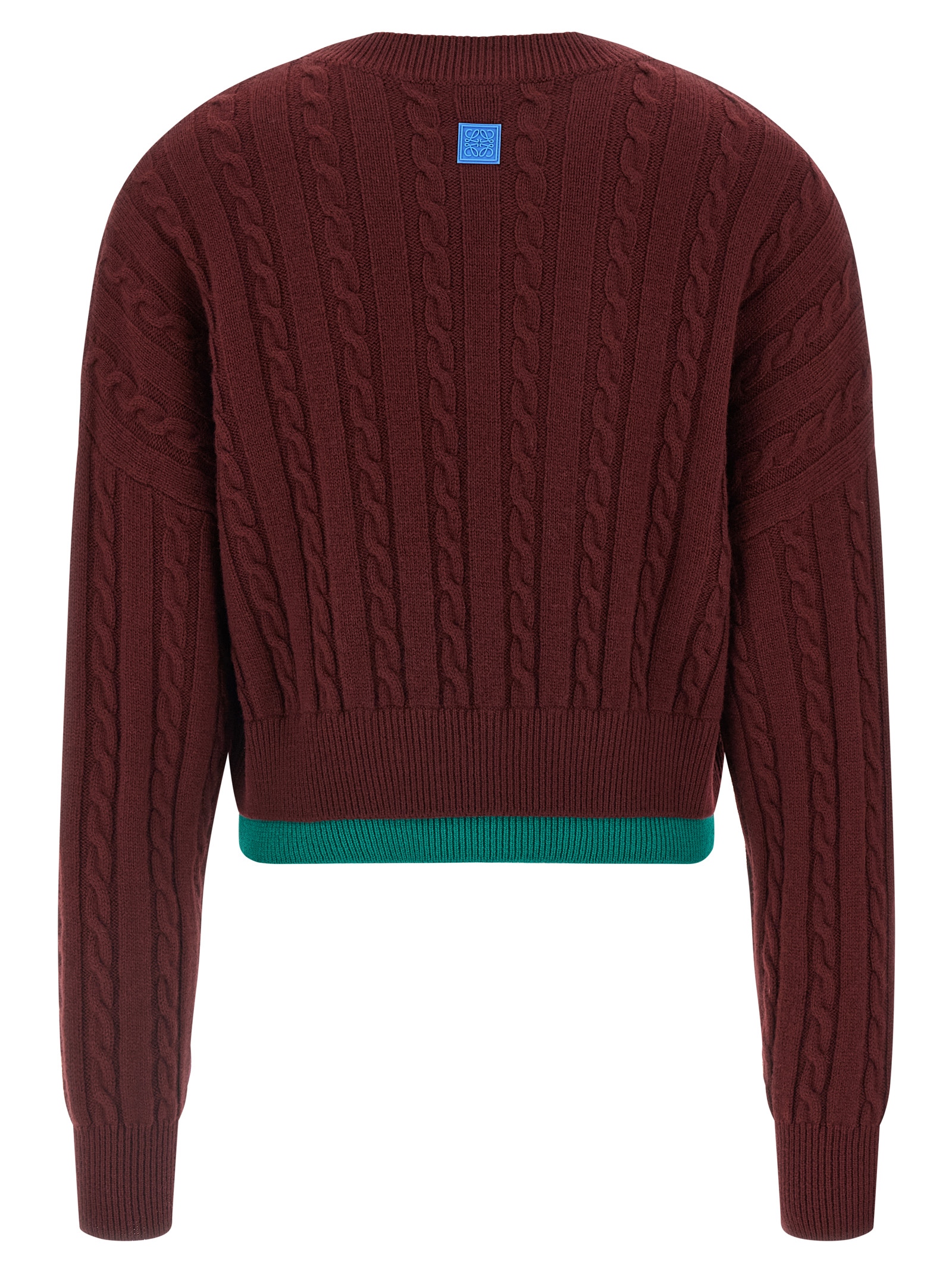 Textured wool sweater of medium weight with braided knit and check inlays inspired by the "Homage to the Square" series by Josef Albers, crop model, Anagram rubber patch at the back, crew neck, long sleeves with cuffs and dropped shoulder, double-layer hem. This shirt is part of LOEWE x Josef and Anni Albers collection.Өнімнің ерекшеліктері