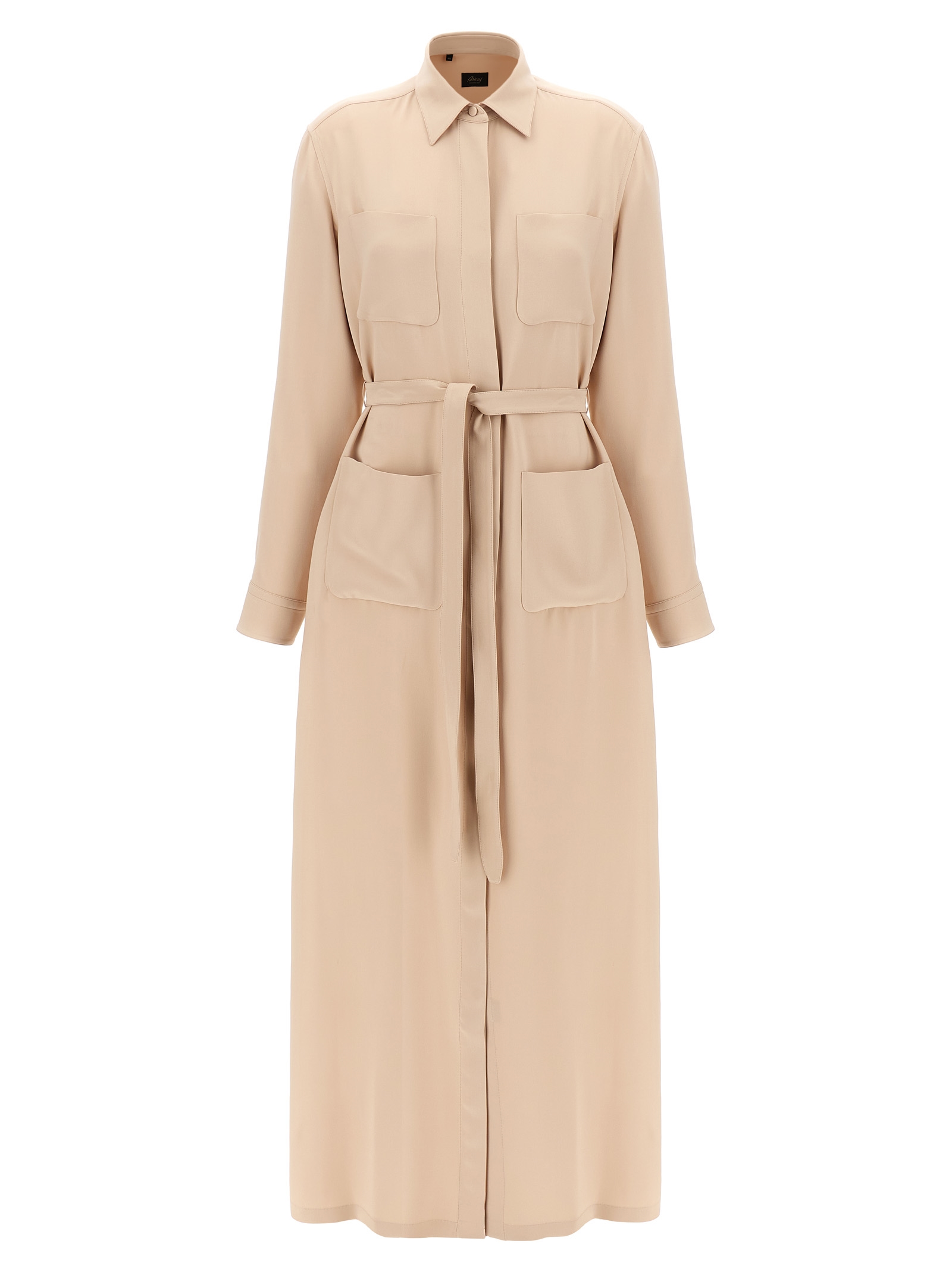 Long 'Workwear' silk cady dress, chemisier model, concealed front button closure, pockets, long cuffed sleeves, removable belt.Өнімнің ерекшеліктері