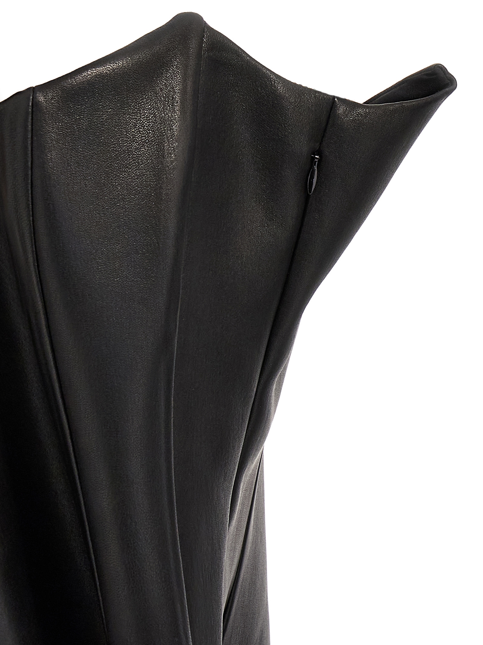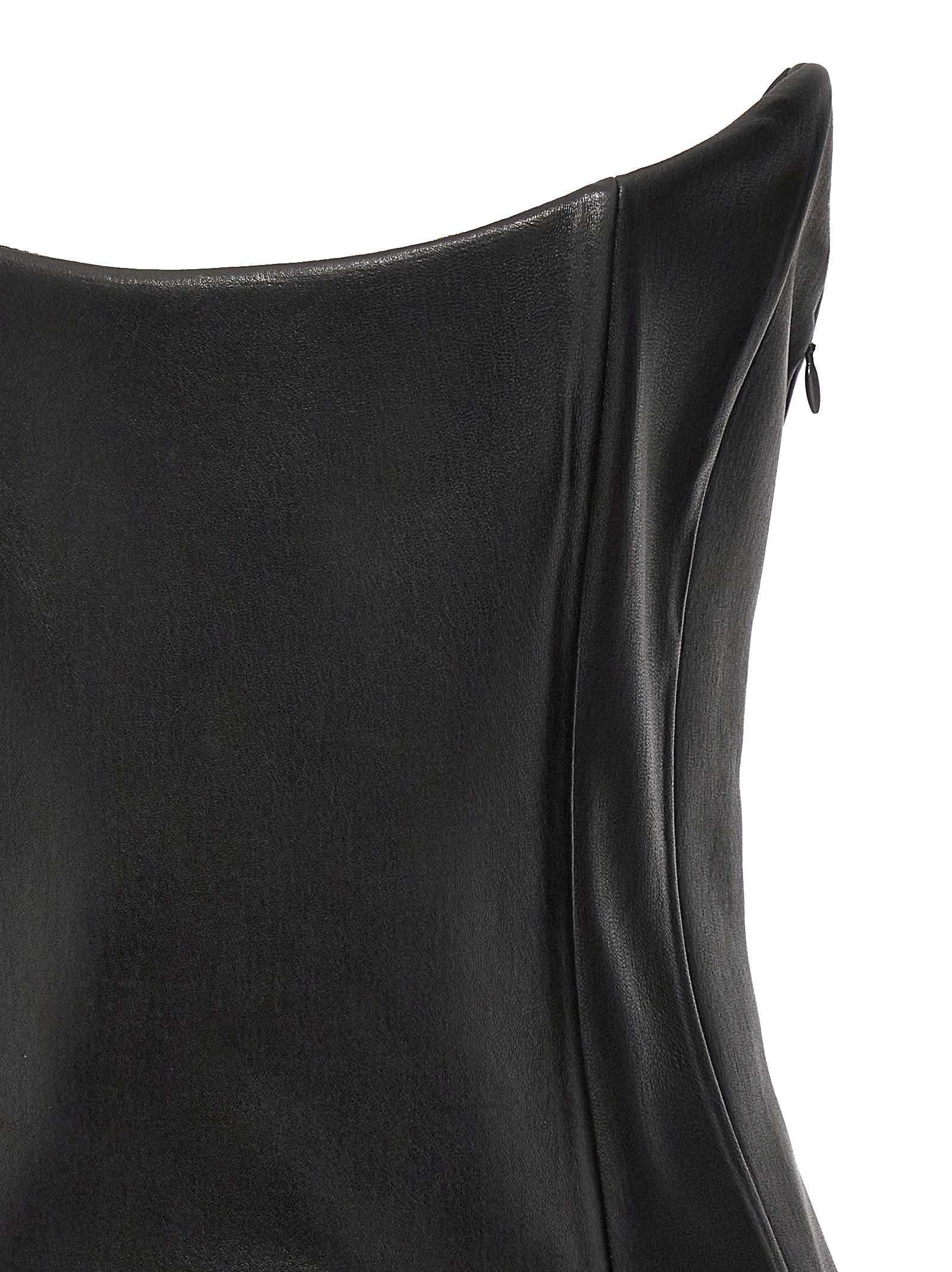 Leather bustier top with asymmetric style and a side zip.Өнімнің ерекшеліктері