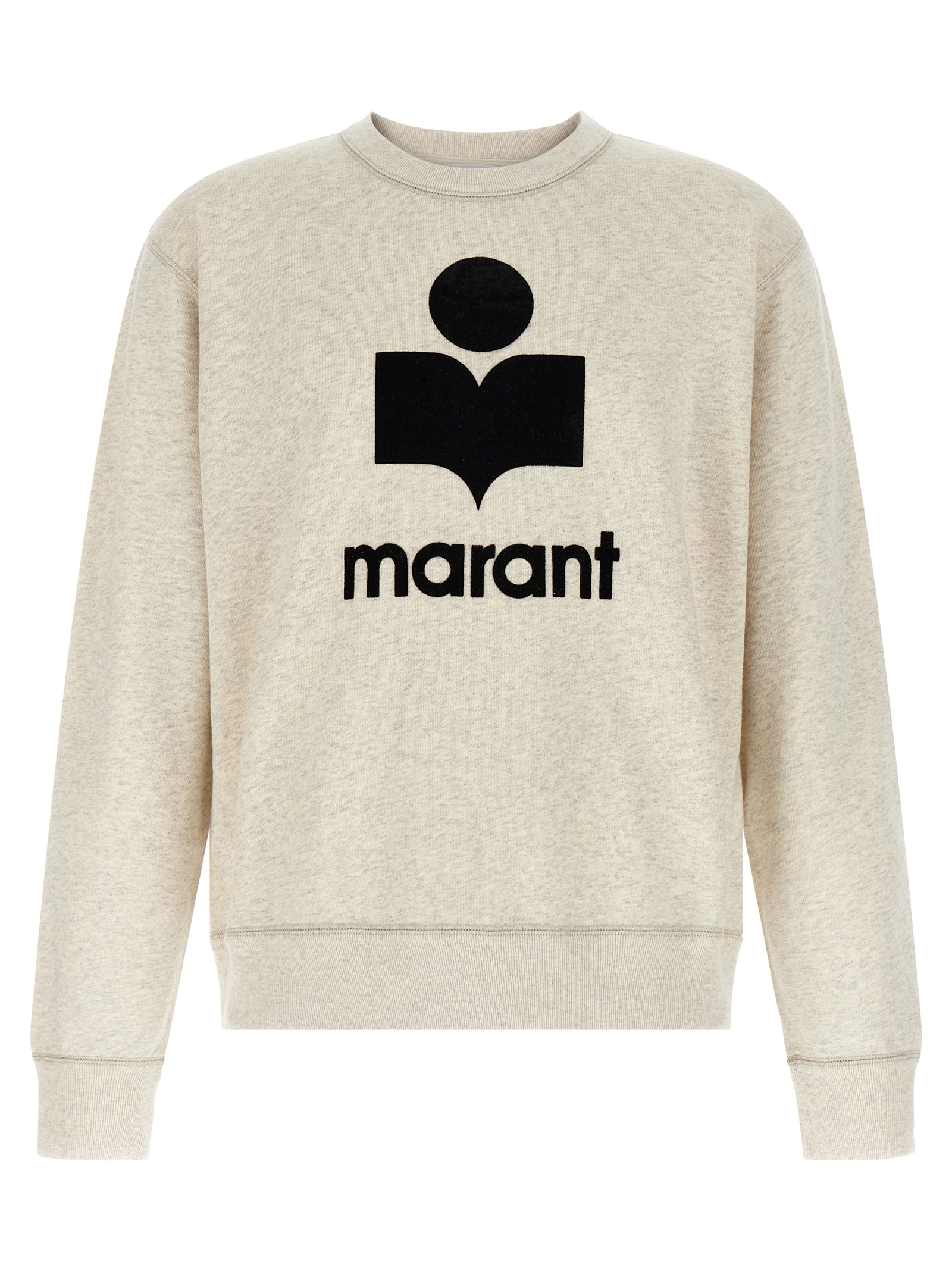 'Mikoy' sweatshirt in melange brushed cotton jersey with front velvet logo, crew neck, long sleeves with cuffs and slightly dropped shoulder.