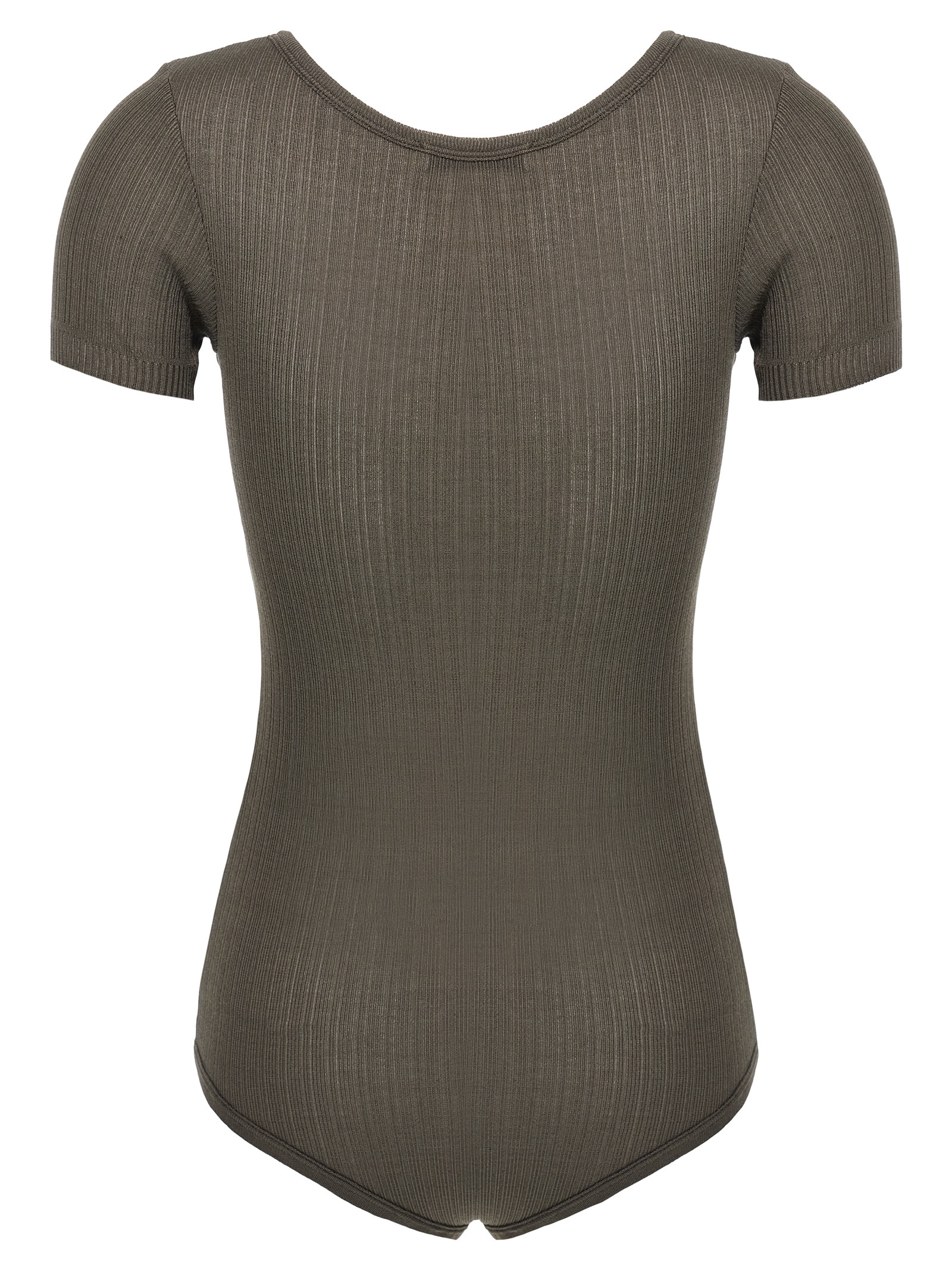 Ribbed viscose and stretch silk blend bodysuit with round neckline, short sleeves, front button closure, snap buttons on the hem.Өнімнің ерекшеліктері