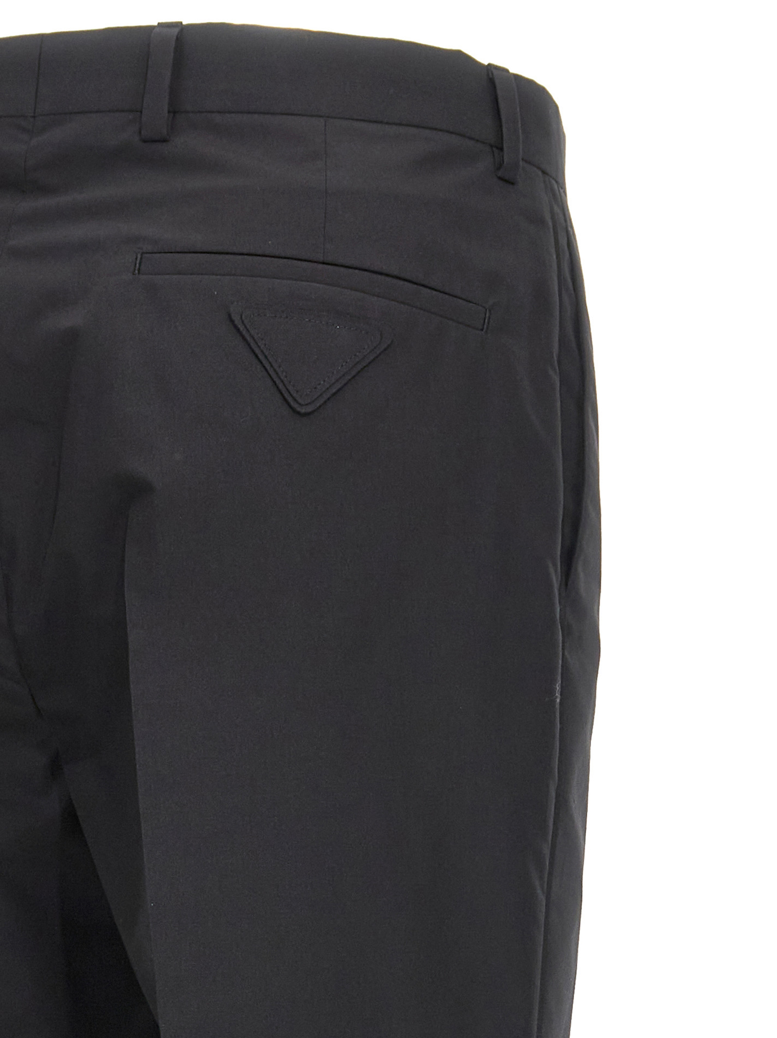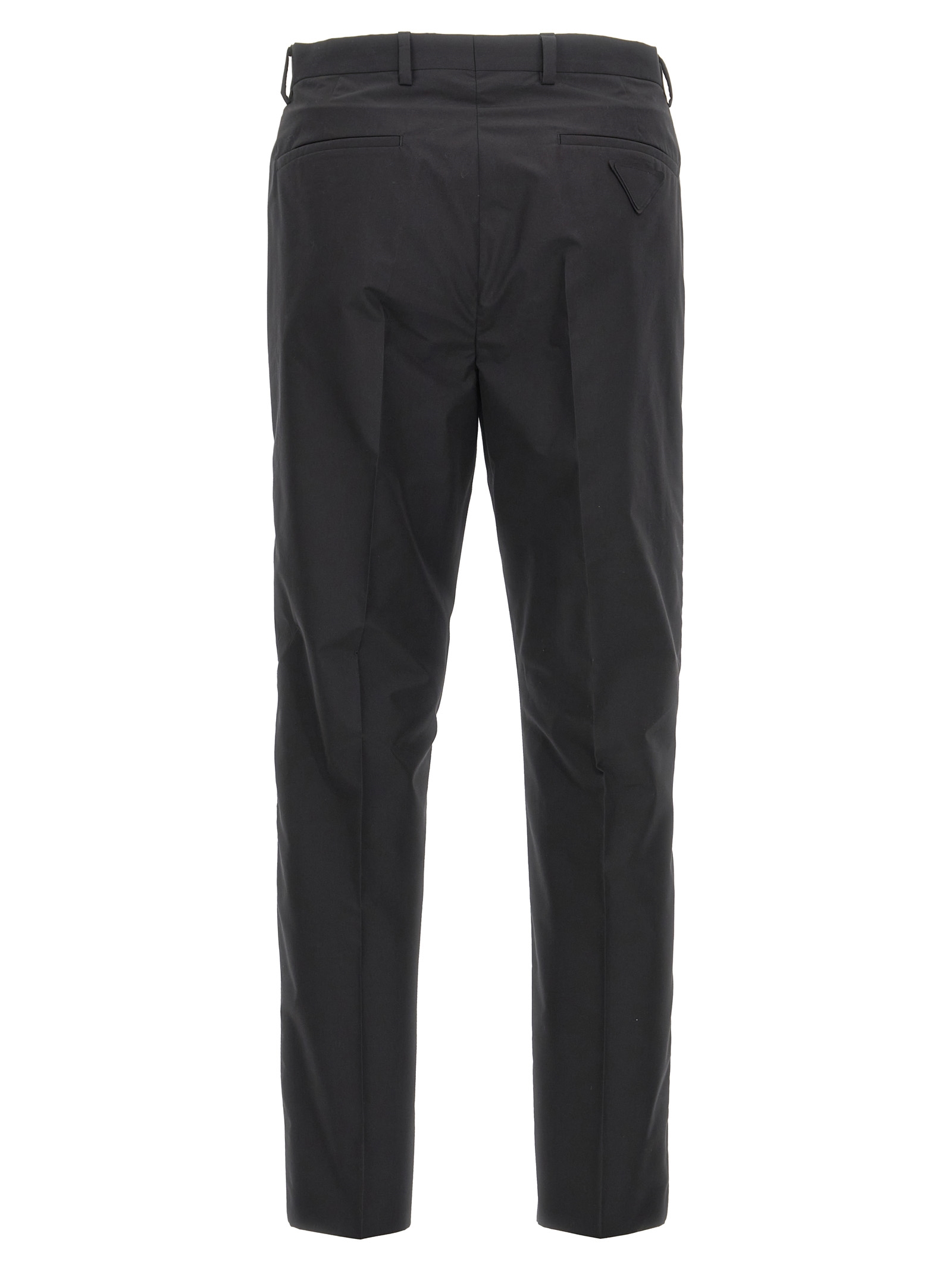 Technical cotton pants, tone-on-tone triangle logo patch on back, narrow leg with ironed crease, zipper and button closure, pockets.Өнімнің ерекшеліктері