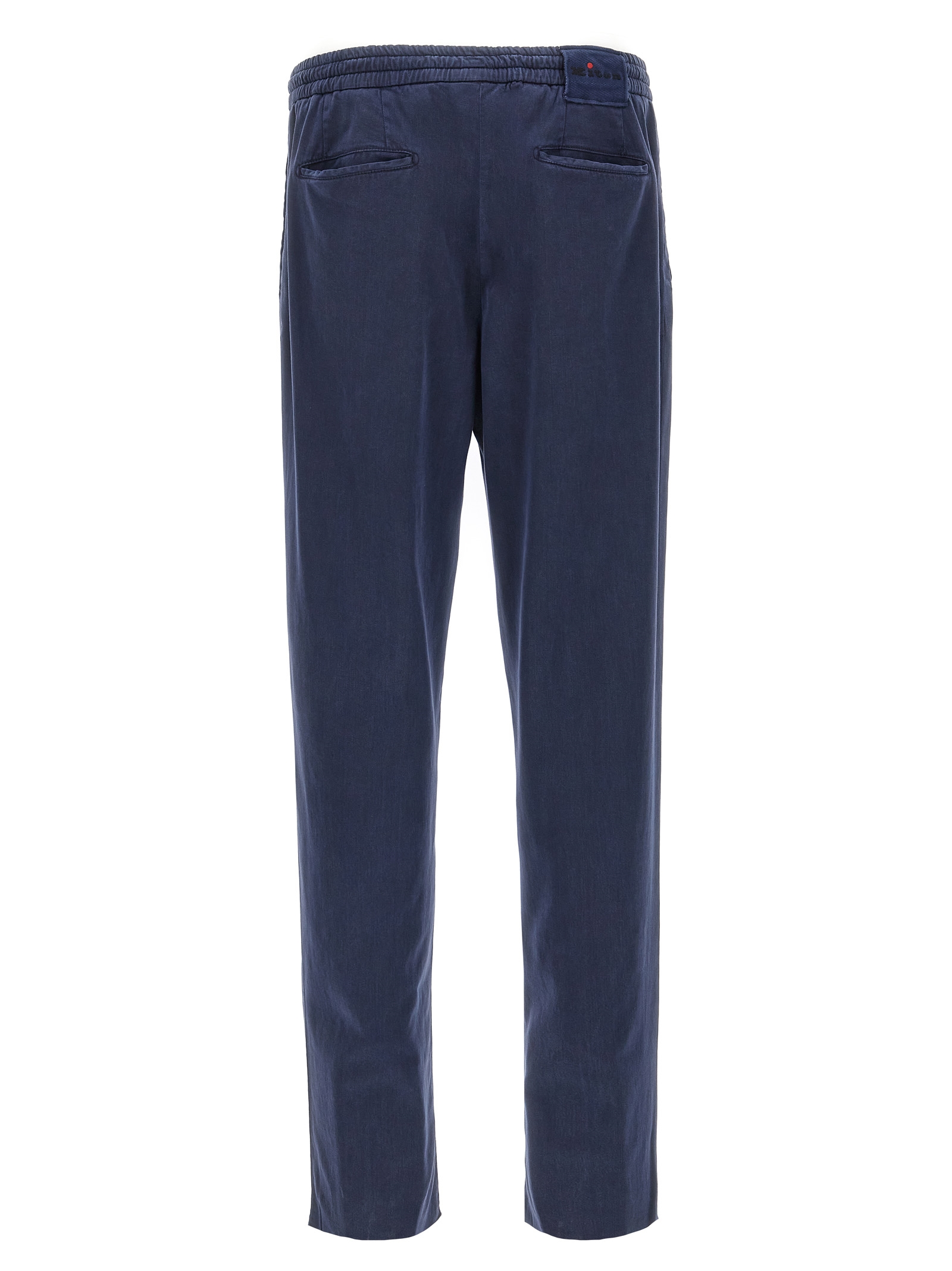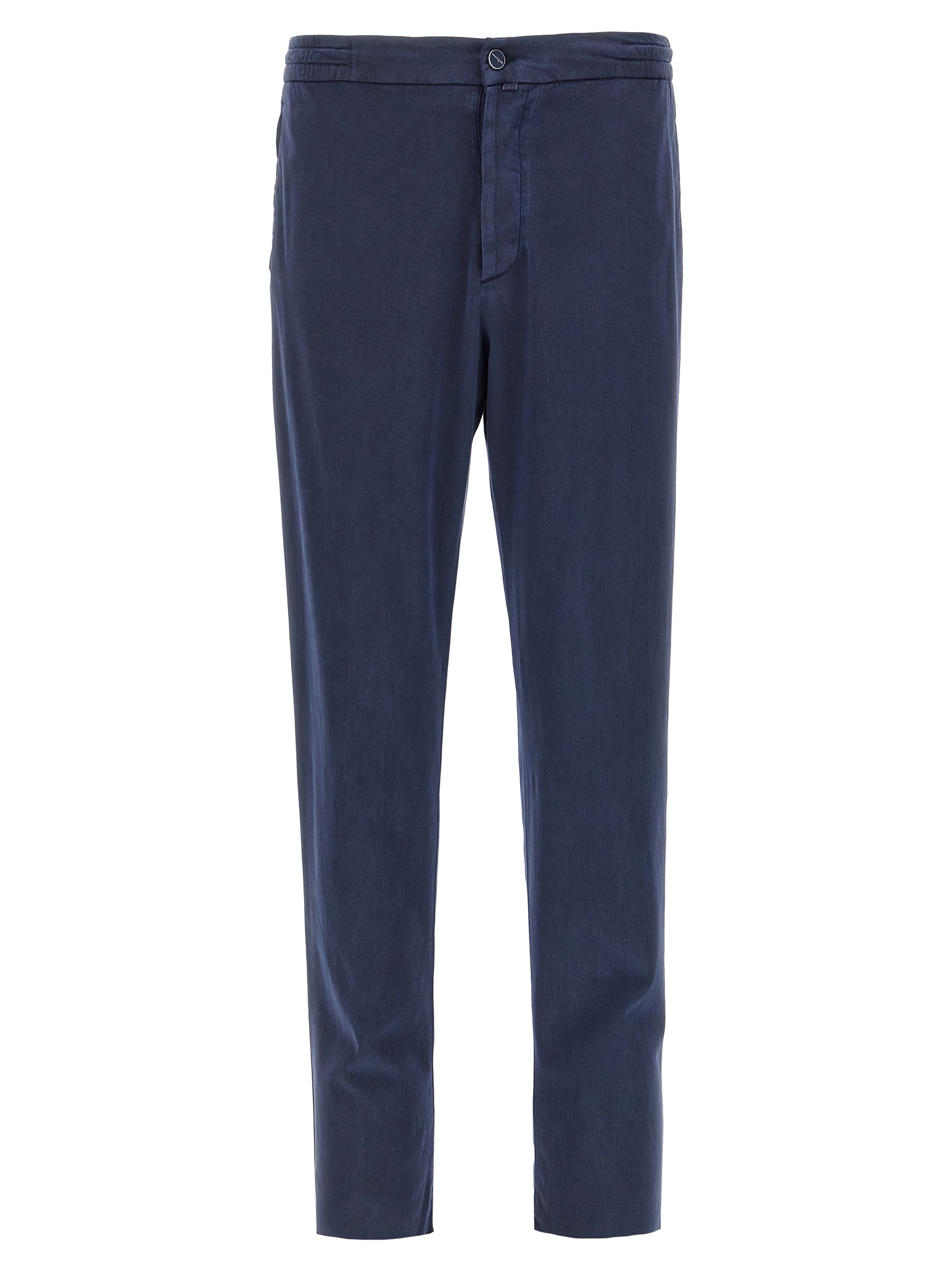'Up1lac' slightly elasticized cotton blend pants, drawstring elastic waistband, front button closure, pockets, straight leg, side pockets.