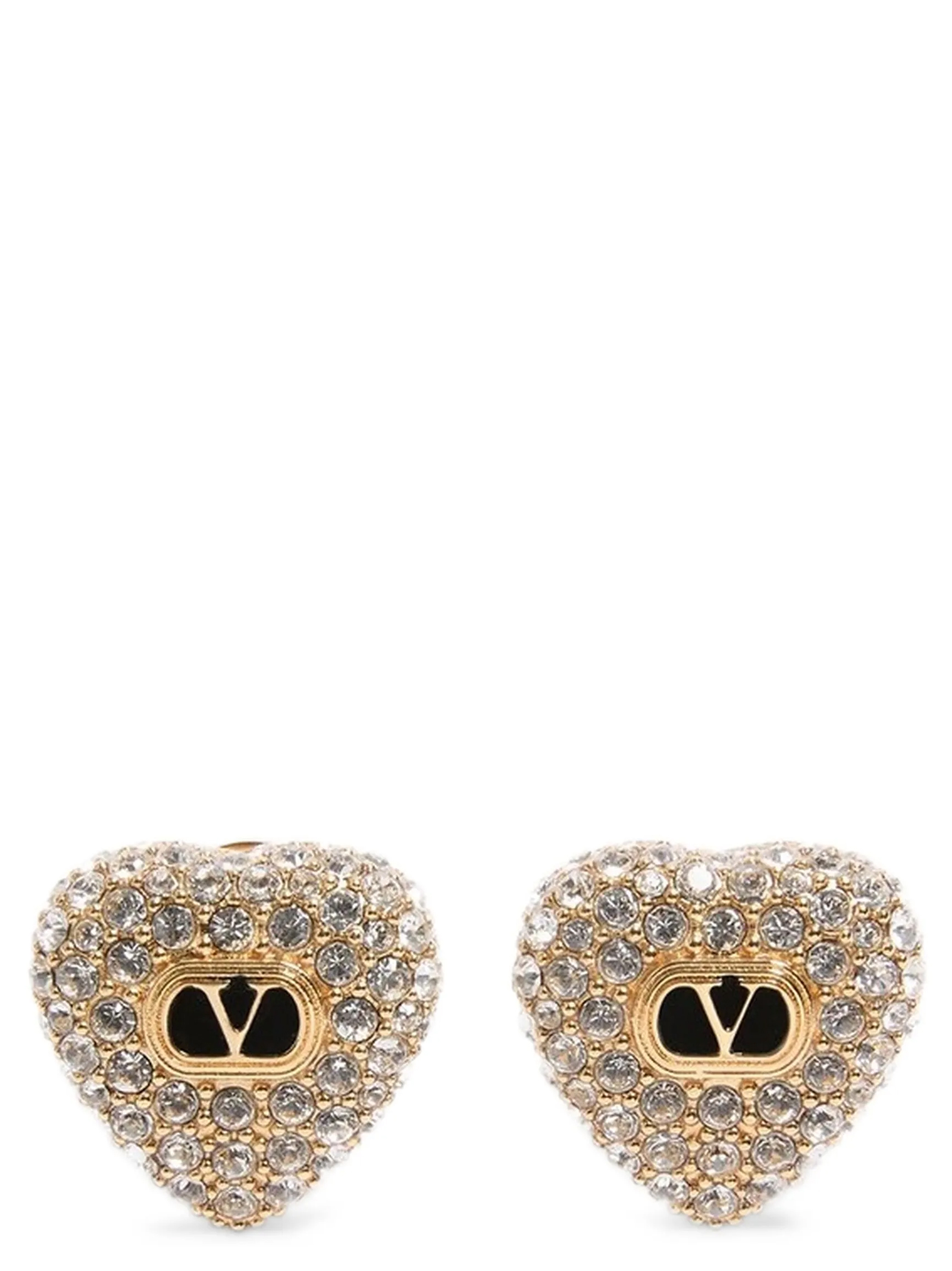 Coeur Royal' heart-shaped earrings in metal studded with crystals, central enamelled VLogo Signature, and butterfly closure. THIS PRODUCT CANNOT BE RETURNED.