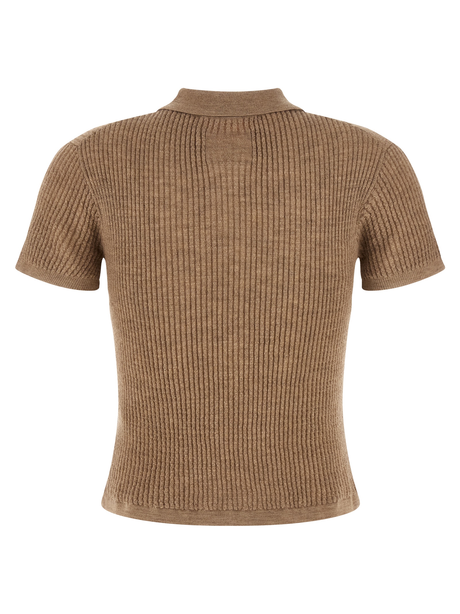 'Shrunken' extra light waffle cashmere polo shirt with collar and buttons, short sleeves.Өнімнің ерекшеліктері