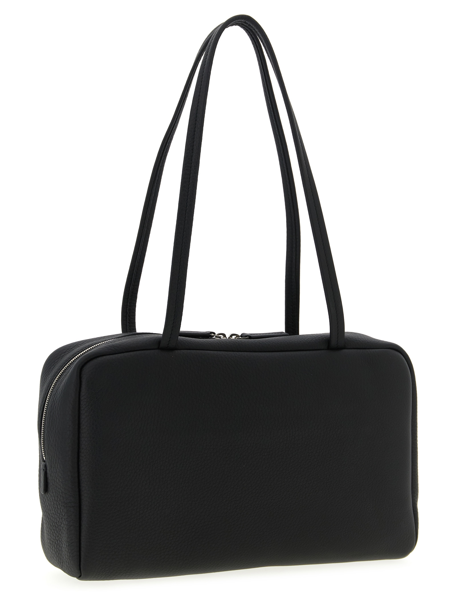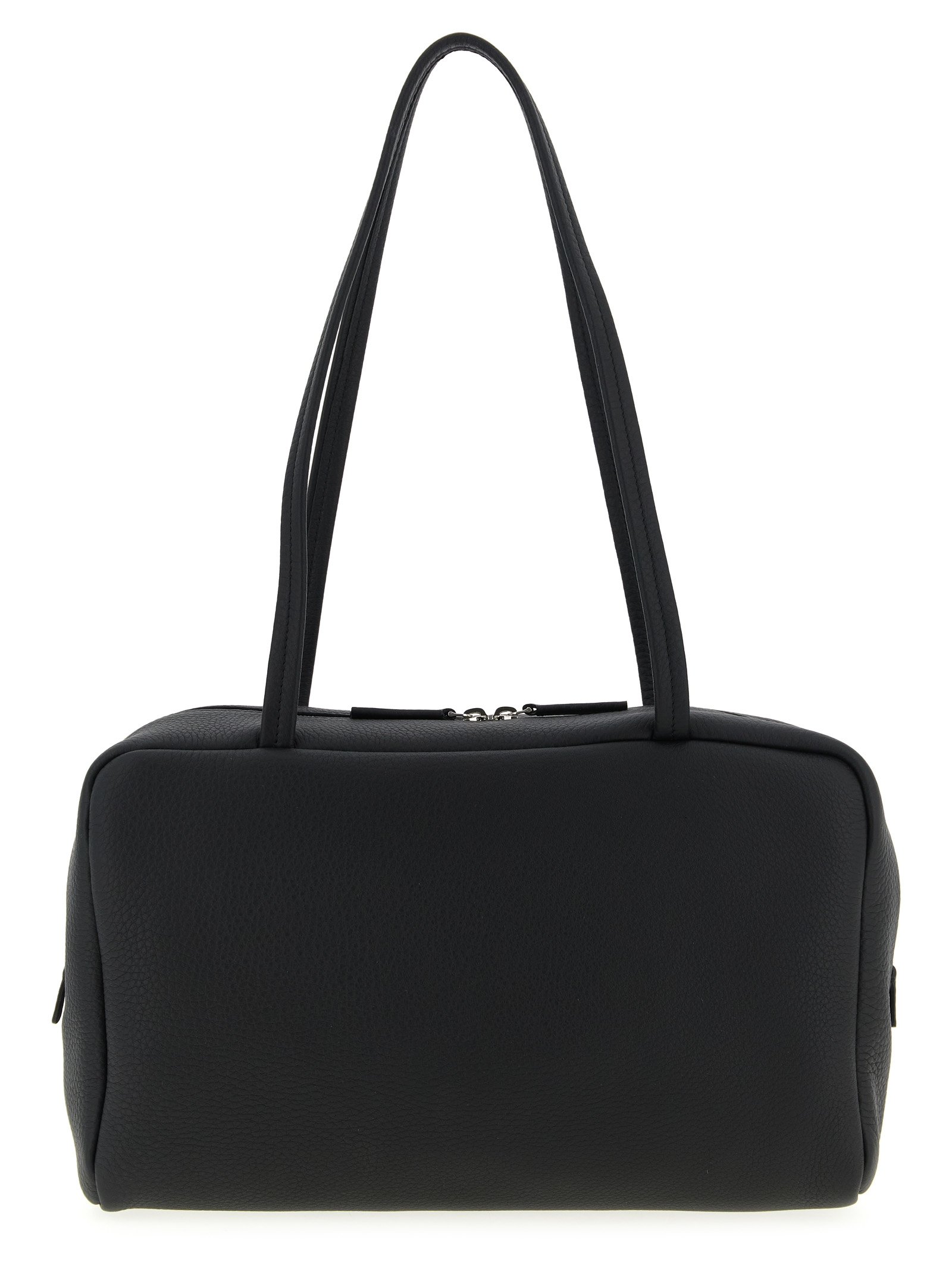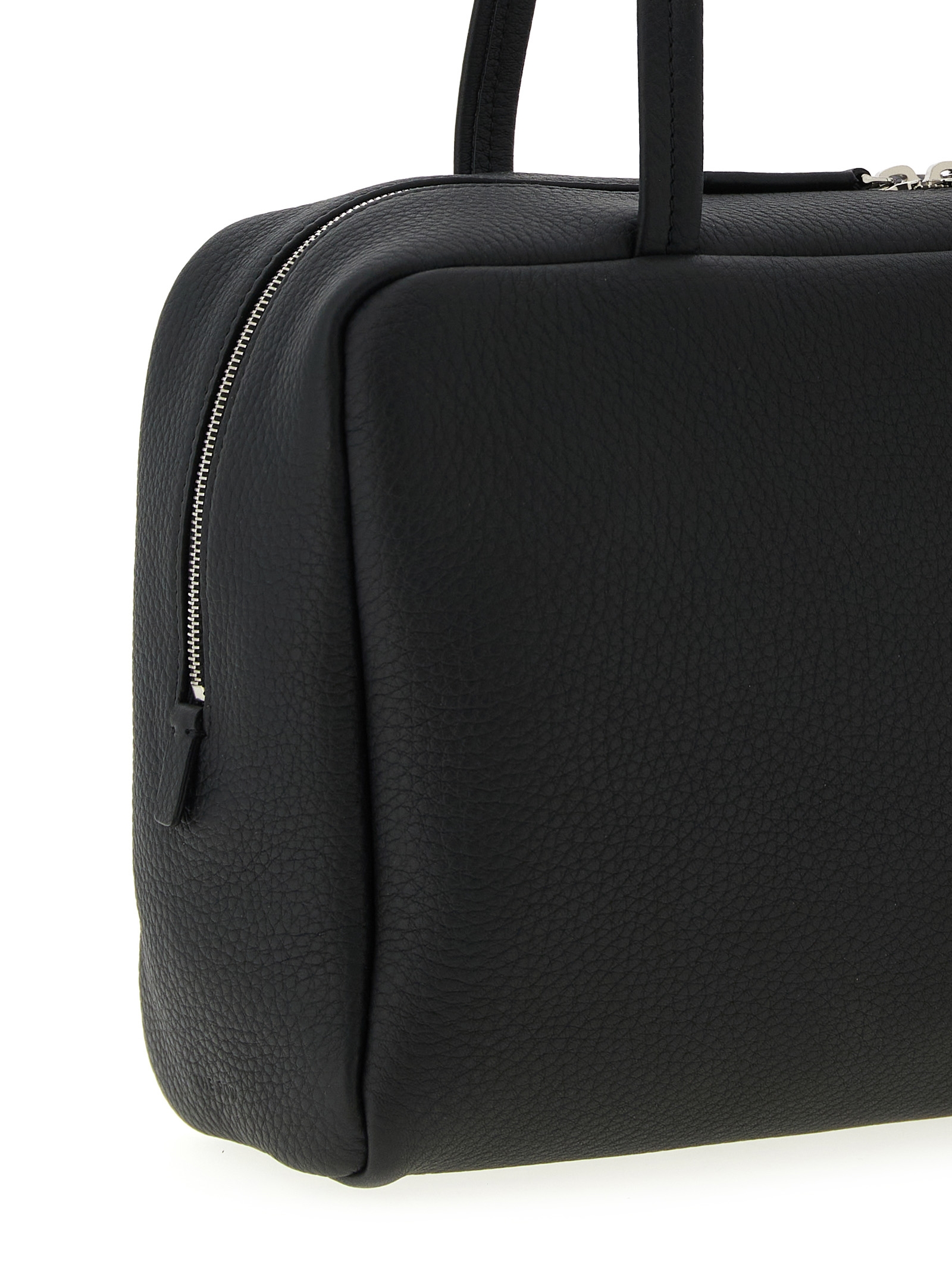 'Asta Bowling' bag in structured calf leather, double flat handle, zip closure.