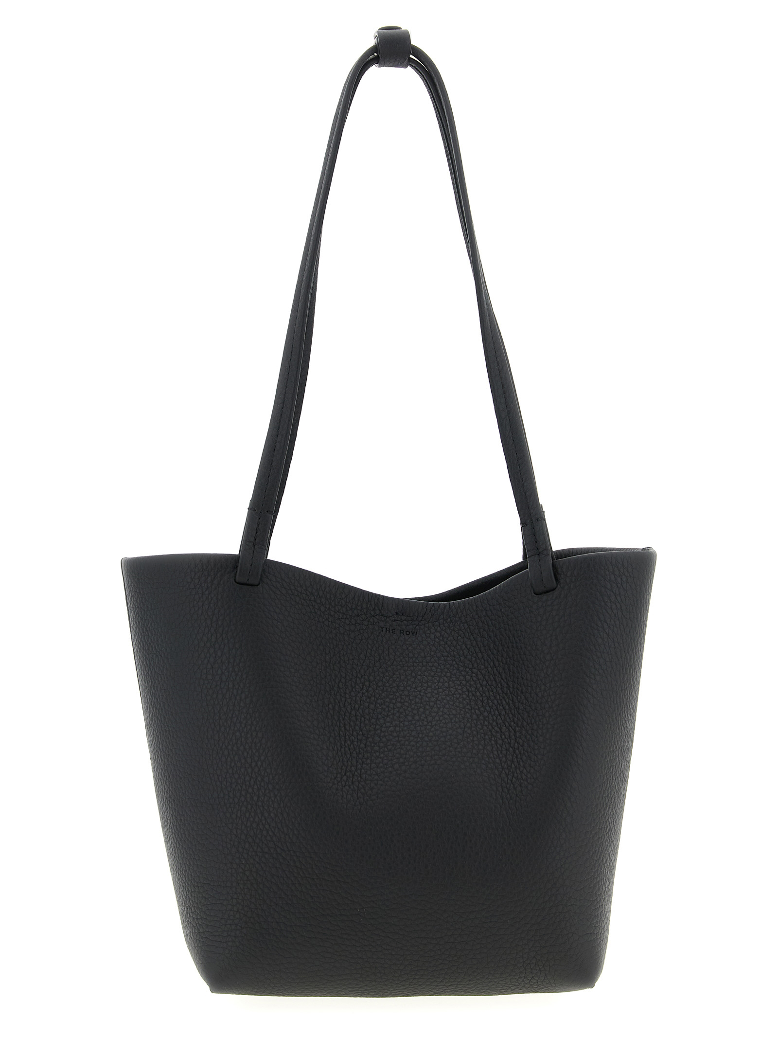 'Medium Park' hammered calf leather shopping bag with front embossed logo, inner lacing closure, double fixed handle, unlined.