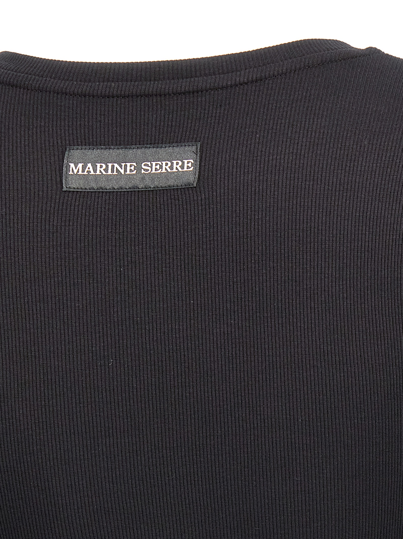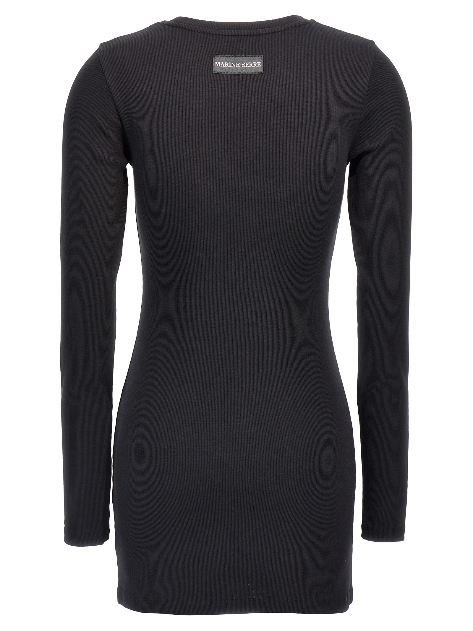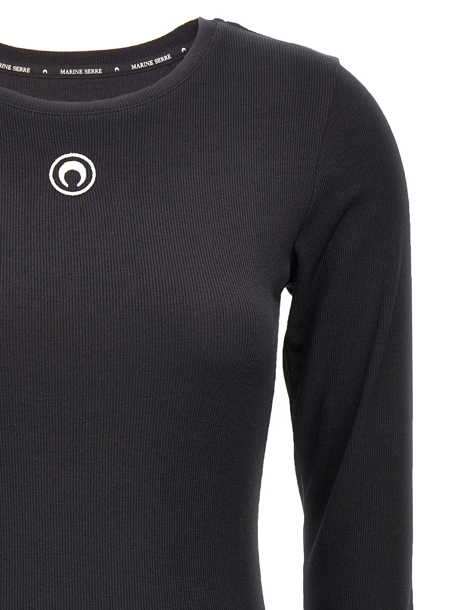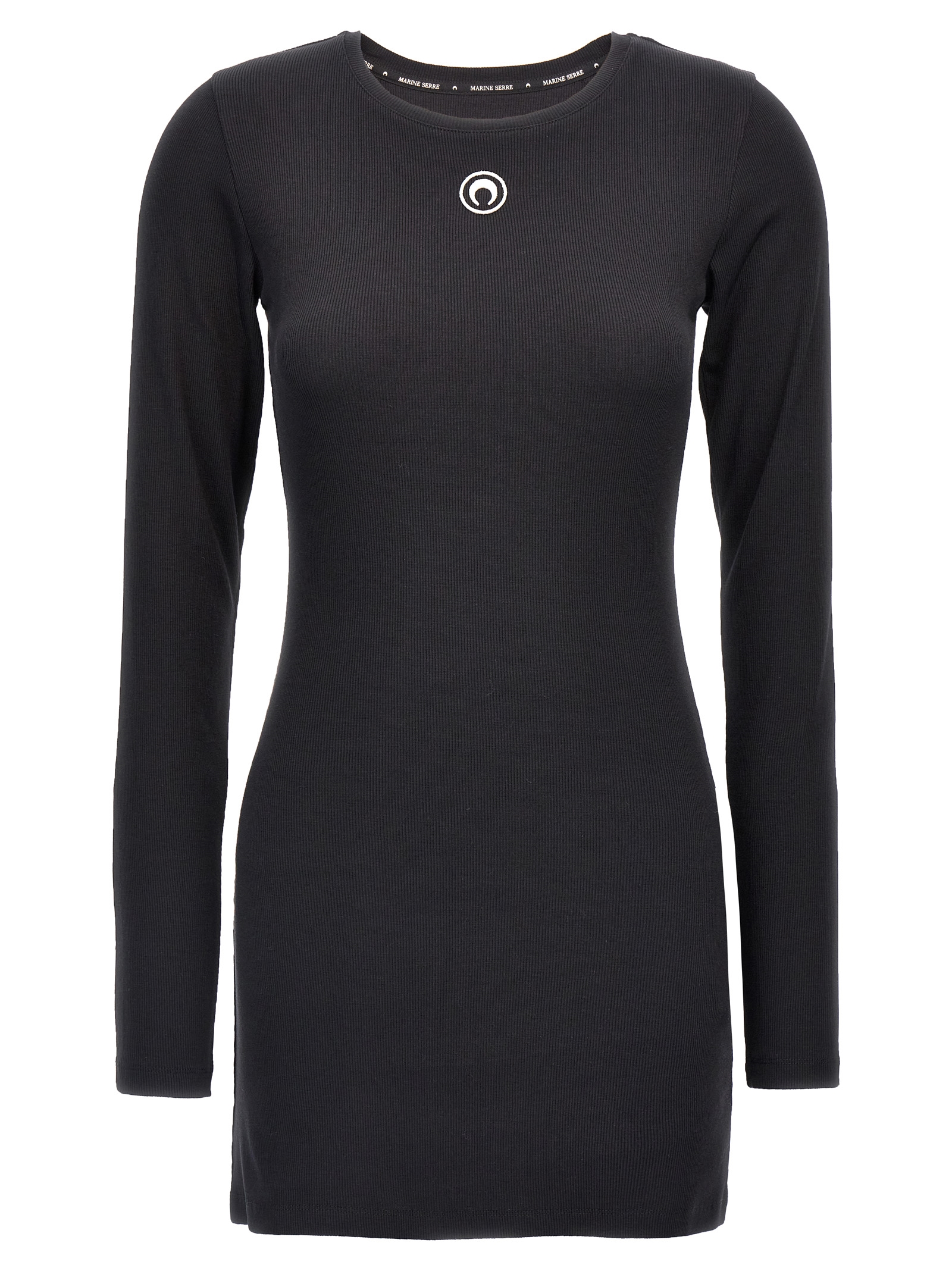 'Moon Logo' ribbed cotton dress with front logo embroidery, crew neck, long sleeves.