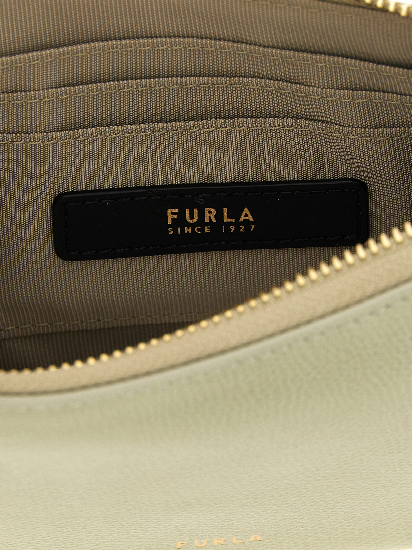 'Furla Sfera' mini shoulder bag in printed leather, half-moon model, front embossed logo, removable resin chain handle with ball pendant detail, top zip closure.Өнімнің ерекшеліктері