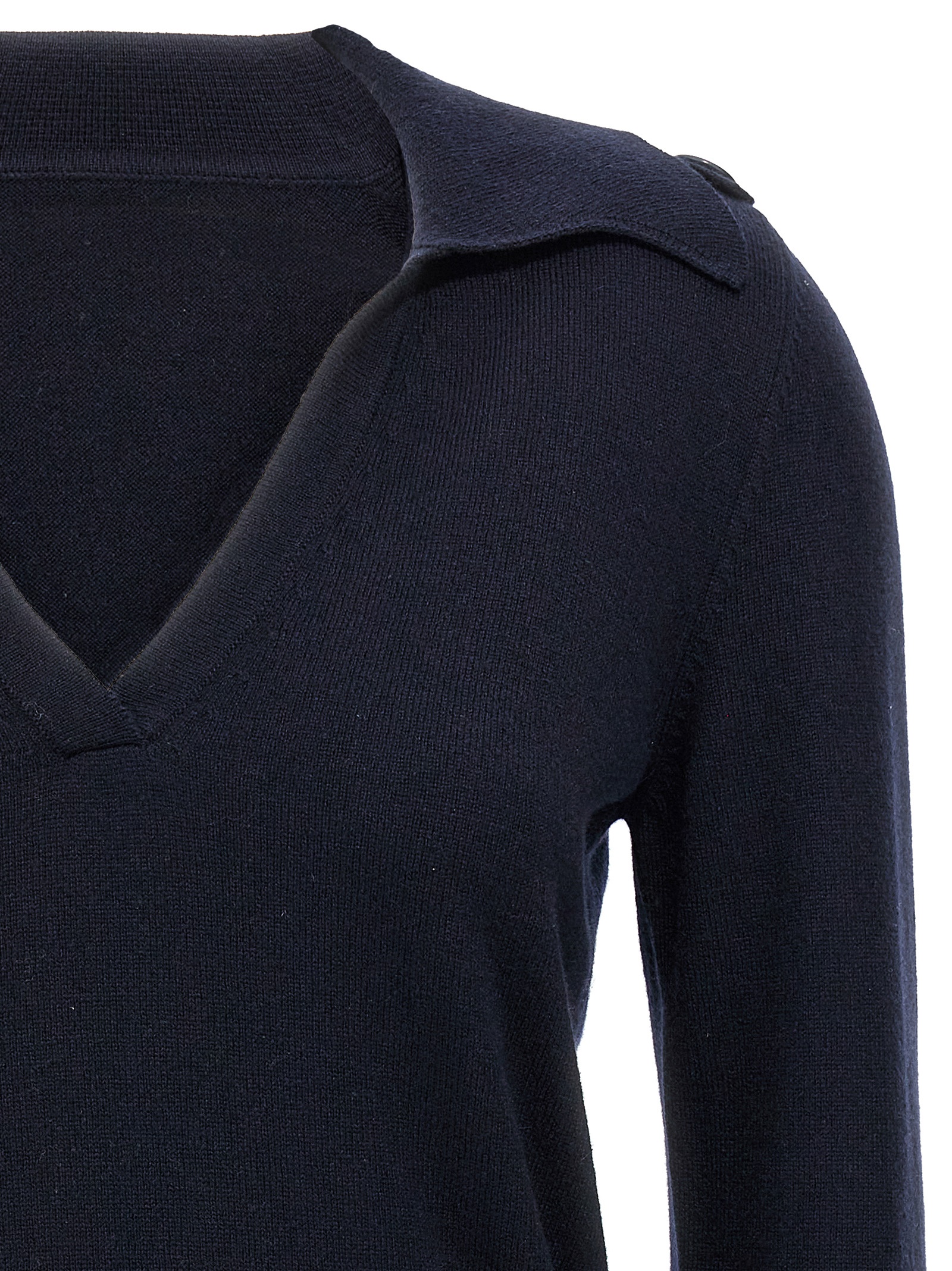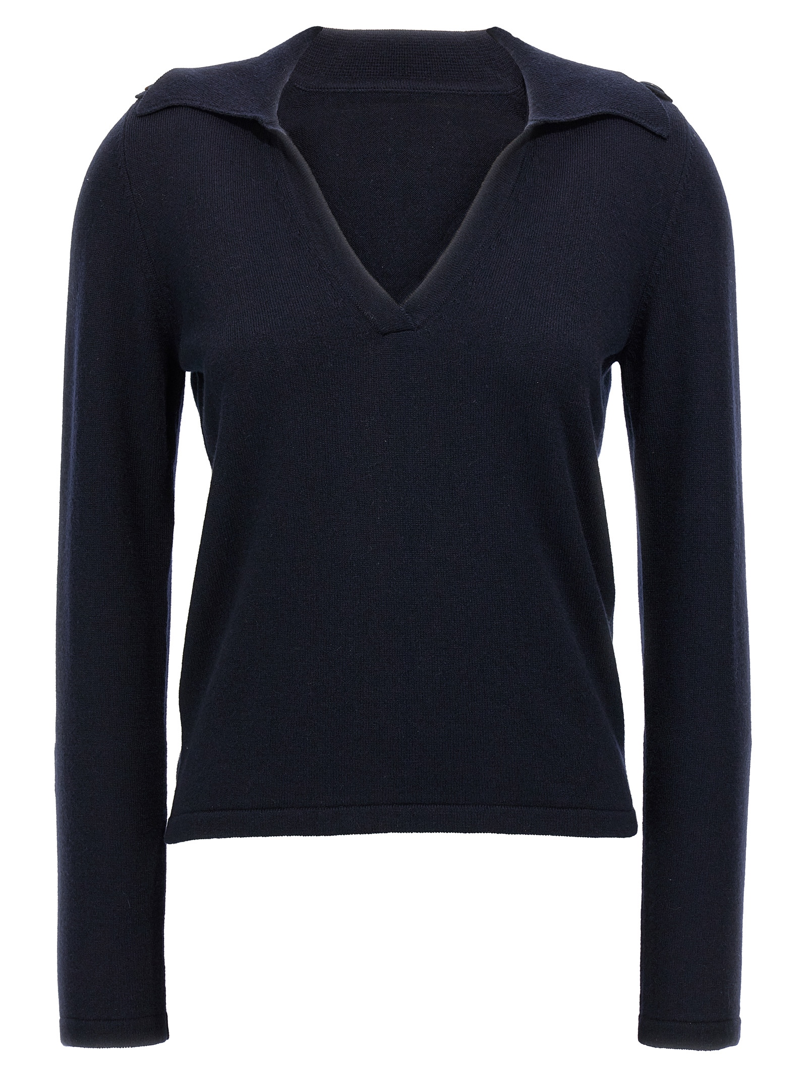 'Lou' polo shirt cashmere sweater with collar and V-neck, button detail on the shoulders, long sleeves.
