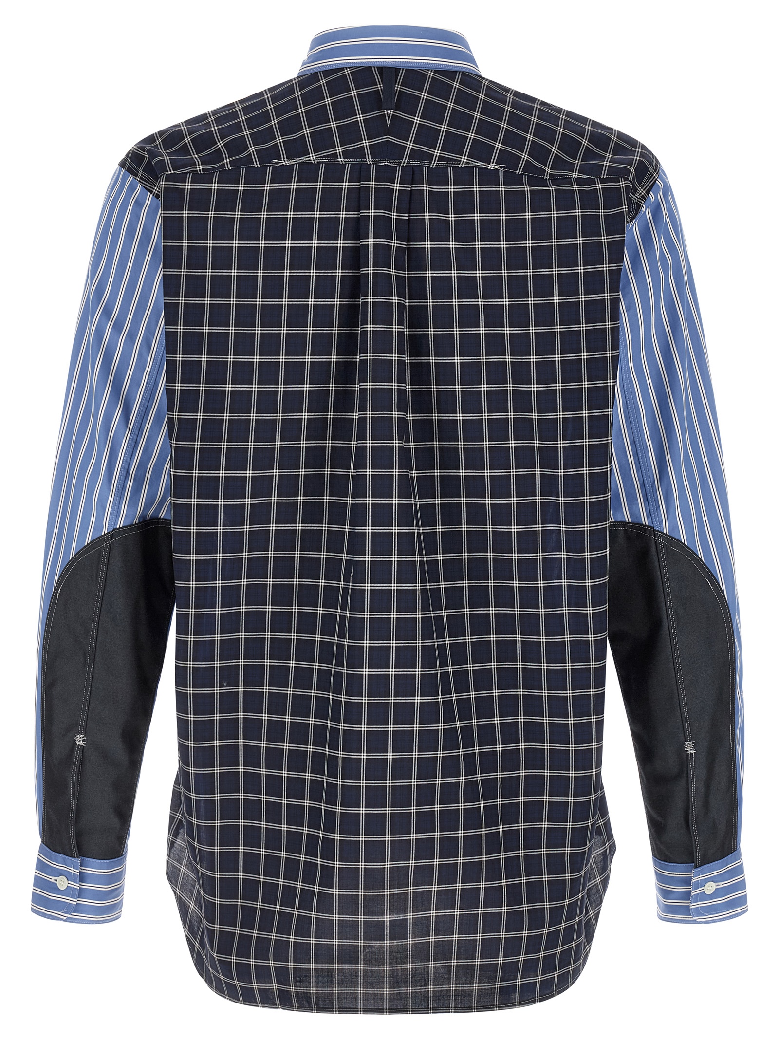 Patterned cotton poplin shirt, patchwork construction, breast pocket, front mother-of-pearl button closure, long sleeves with contrast cuffs and patch, back rack with cannon pleats, rounded hem.Тауар сипаттамалары