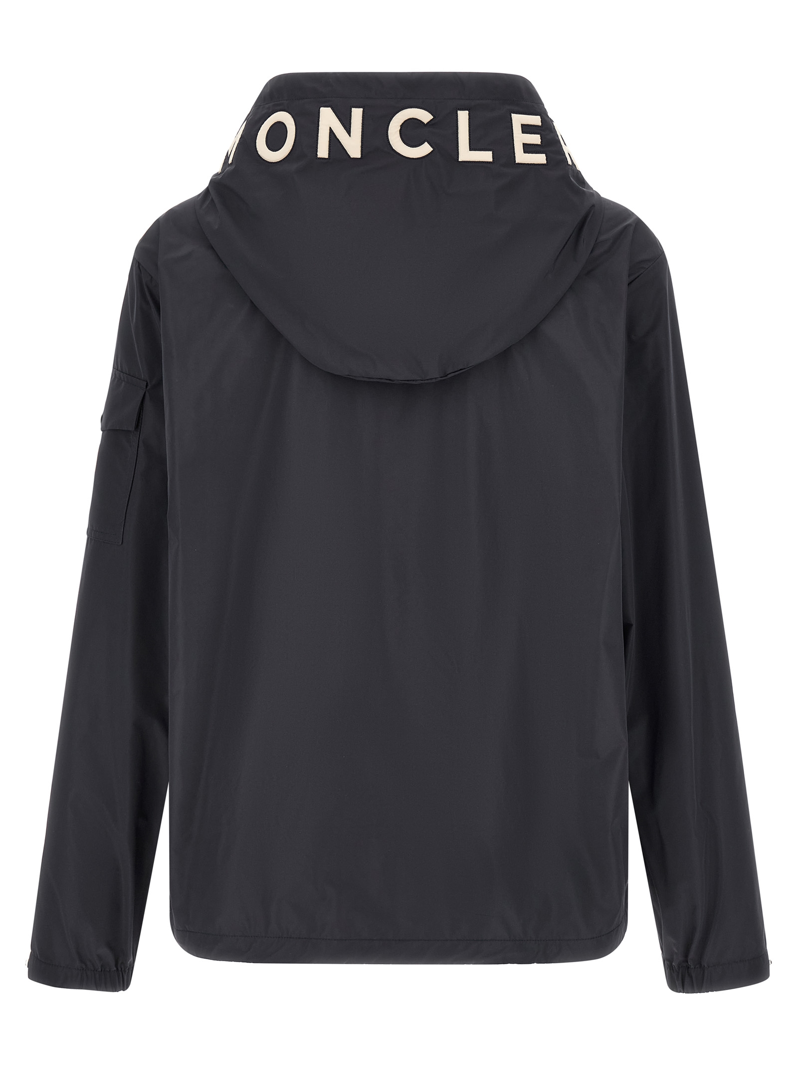 'Sassiere' jacket in water-repellent technical fabric, lining, adjustable hood, high neck, front zip closure, pockets, long sleeves with adjustable elastic cuffs and felt logo patch, drawstring on the hem.