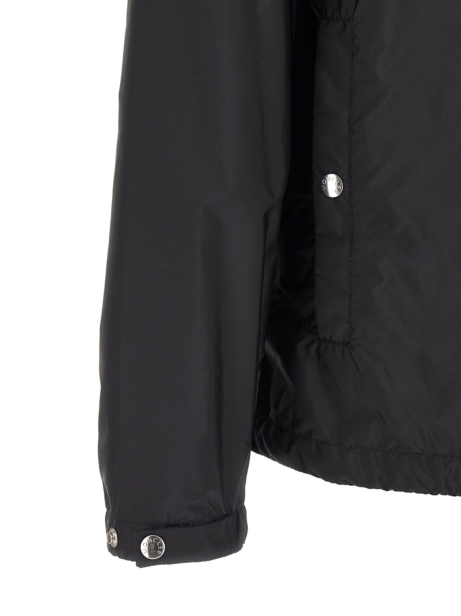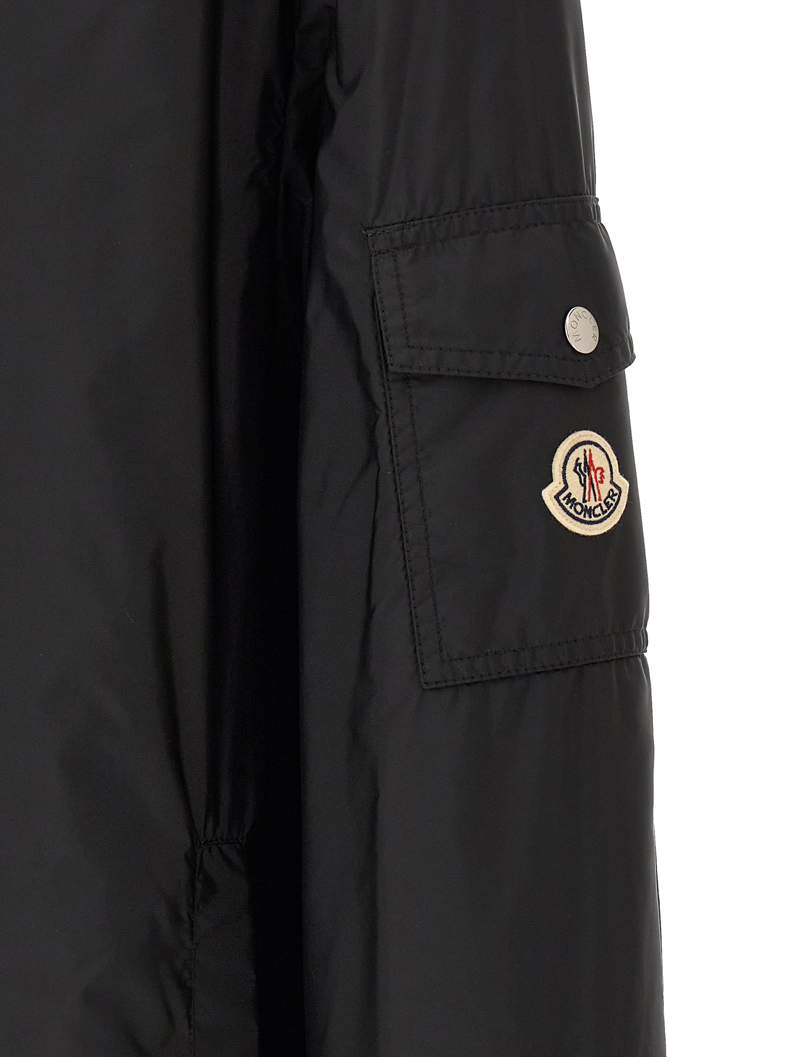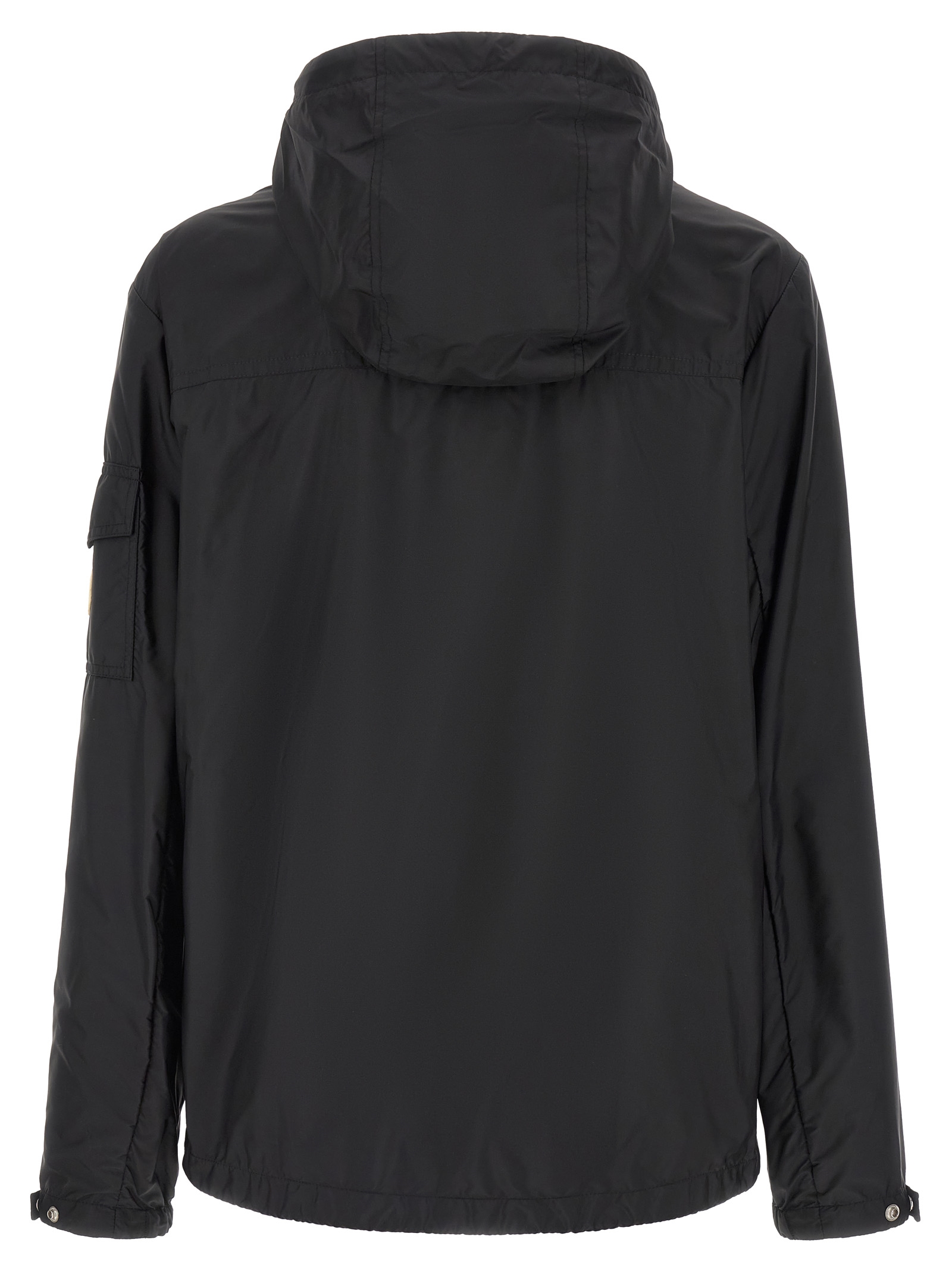 Etiache' water-repellent rainwear nylon jacket with adjustable hood, high neck, front zip closure, pockets, long sleeves with adjustable elastic cuffs, felt logo patch, drawstring at the hem.