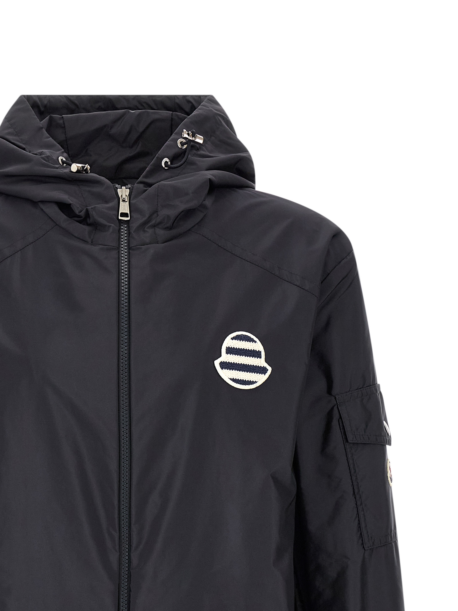 Ветровка «Mornay» из технической ткани, без подкладки, с регулируемым капюшоном, высоким воротником, вышитой крестиком нашивкой с логотипом и застежкой-молнией спереди, карманами, длинными рукавами с регулируемыми эластичными манжетами и фетровой нашивкой с логотипом, шнурком по низу.Характеристики товара