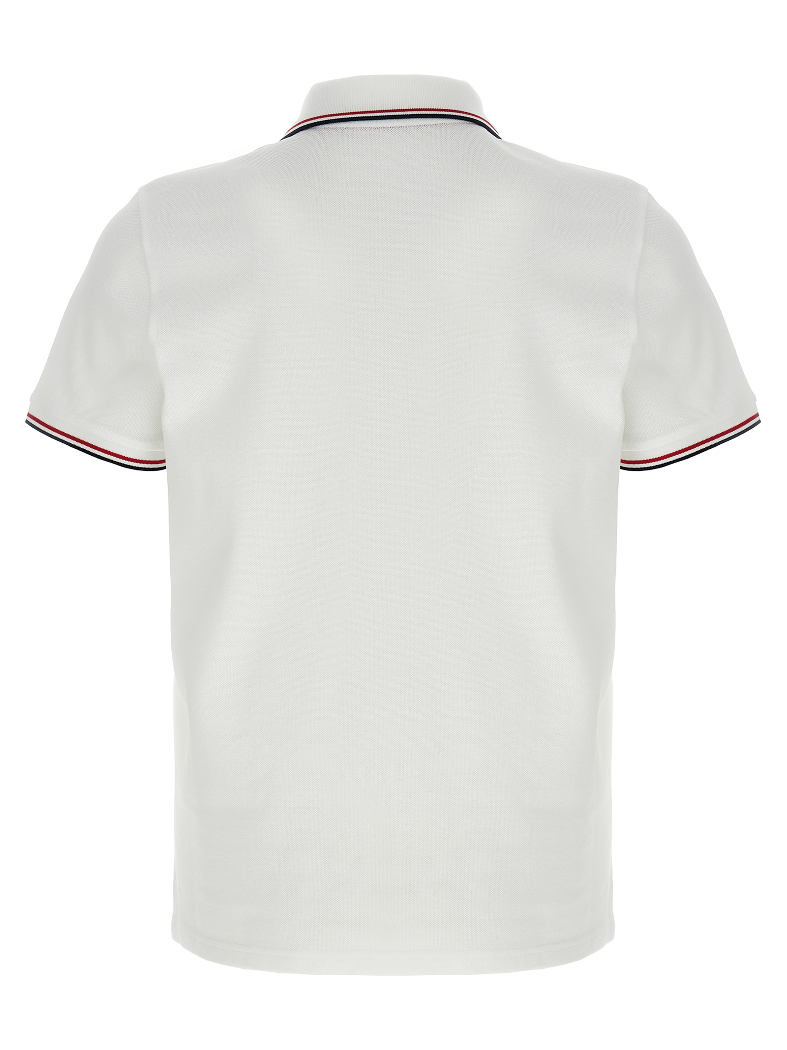Cotton piquet polo shirt with tricolor details, front felt logo patch, collar and buttons, short cuffed sleeves, side slits.