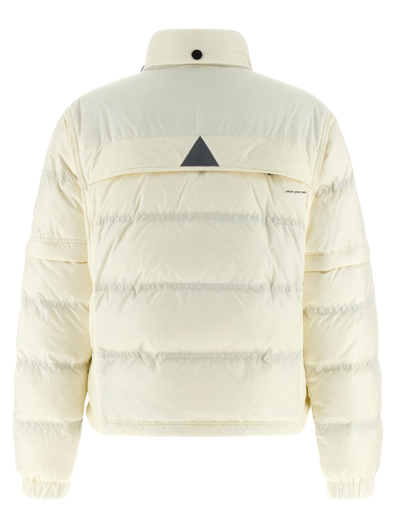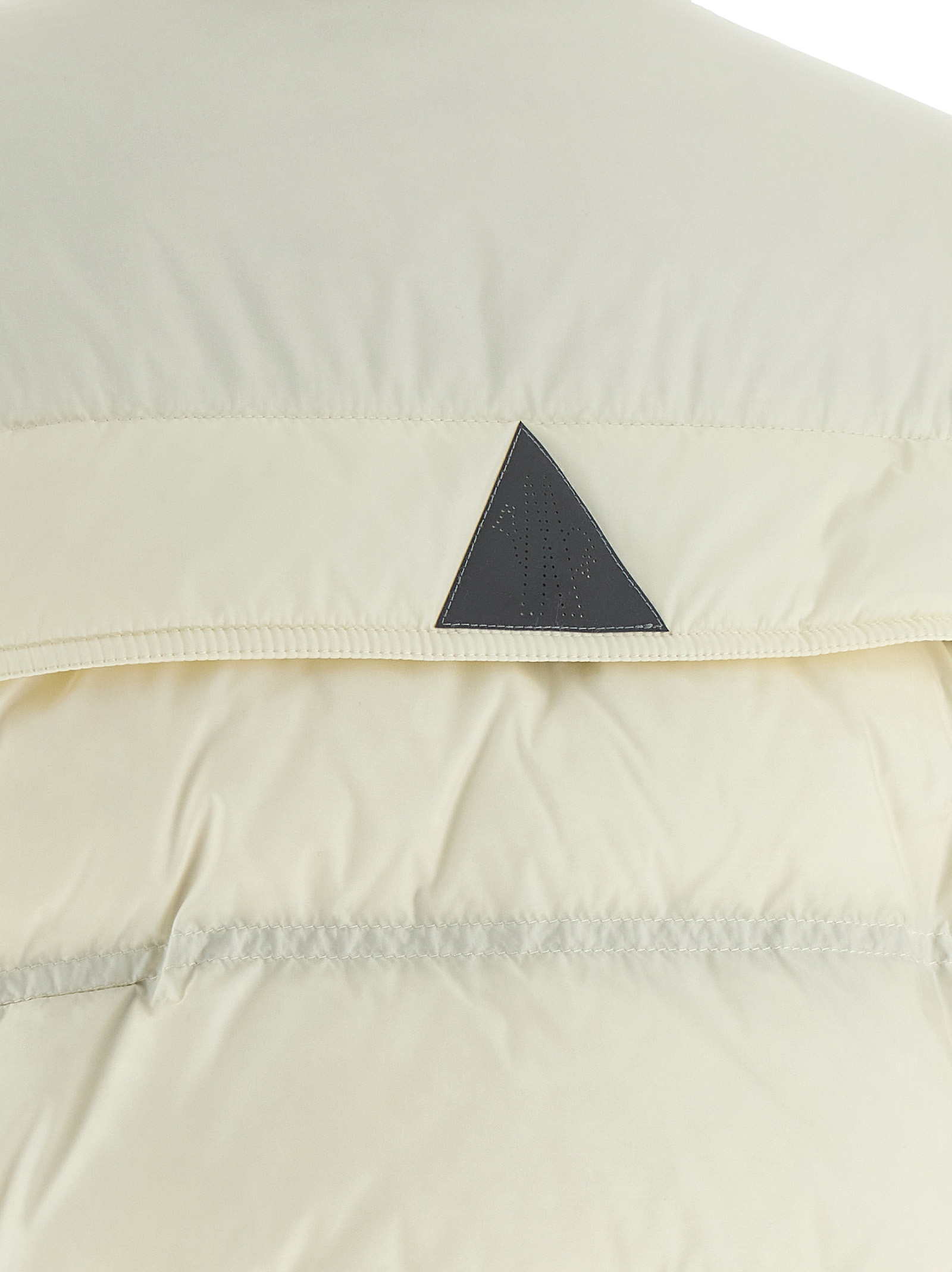 'Mauduits' nylon down jacket with lightweight padding, high neck, zip and snap button closure, detachable zip sleeves. Removable hood, elasticated cuffs, adjustable drawstring at the bottom, foldable in the back pocket.