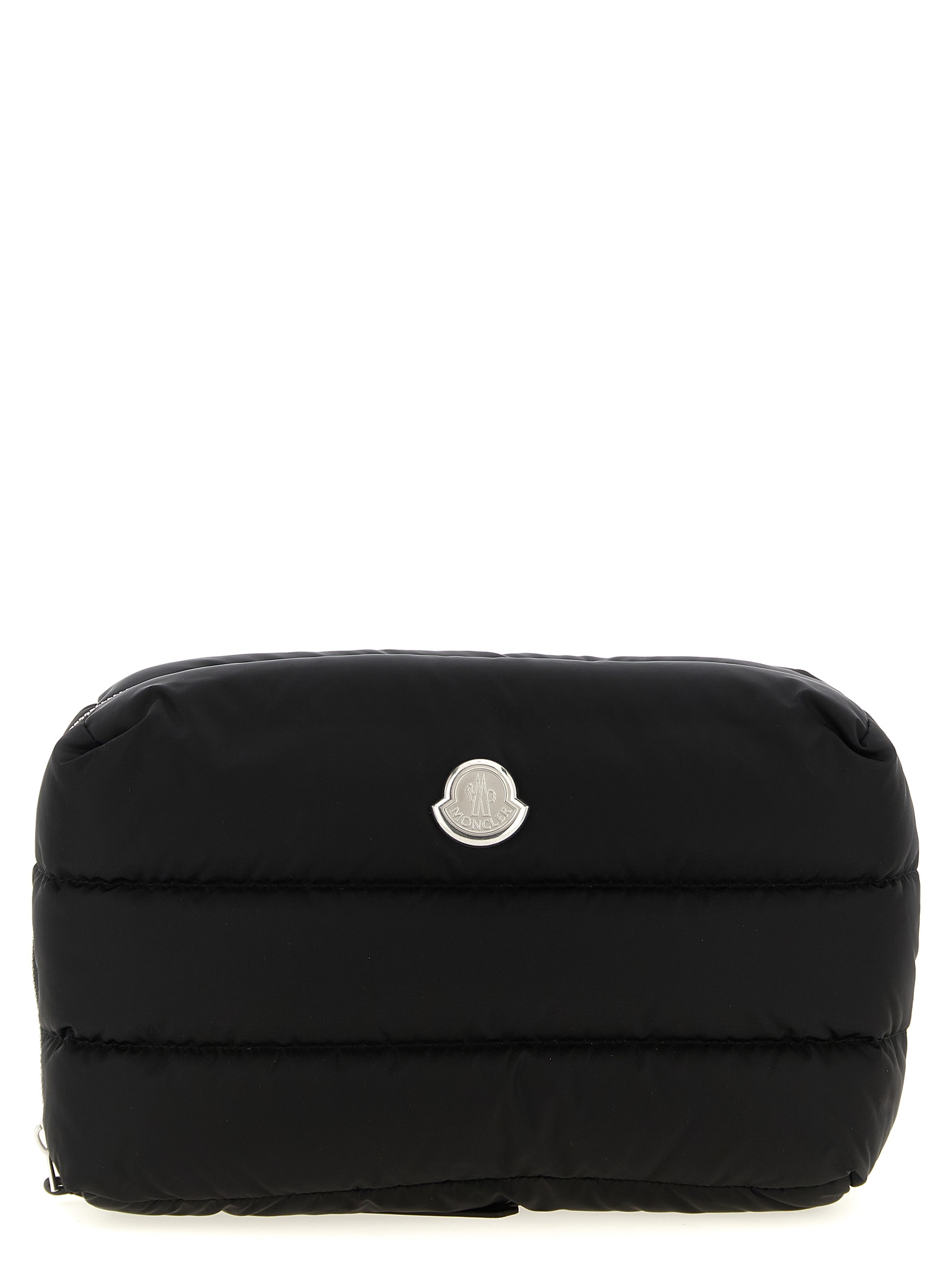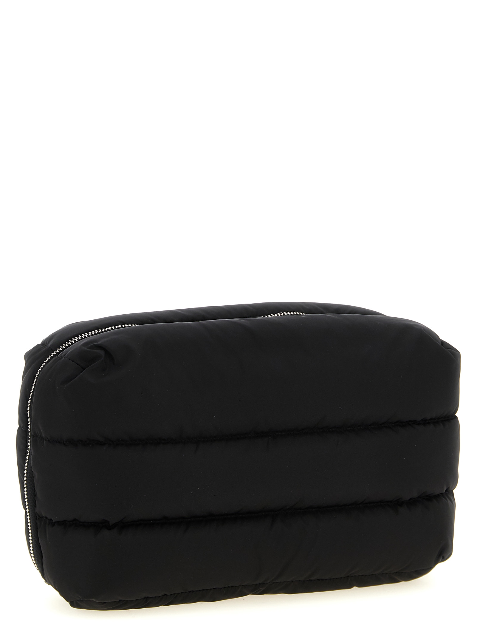'Caradoc' beauty in horizontal and padded quilted Teflon nylon, antiqued metal logo patch on the front, top zip closure, inside pocket.