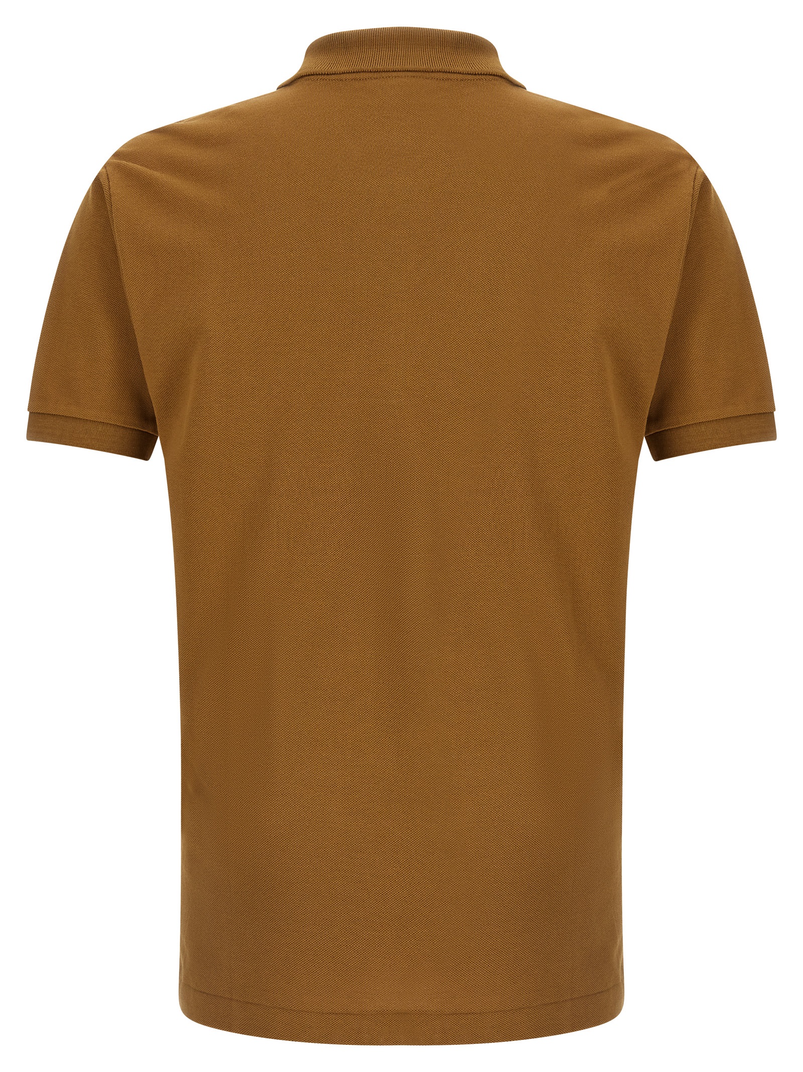 Cotton piqué polo shirt, front logo patch, collar and buttons, short sleeves, side vents.