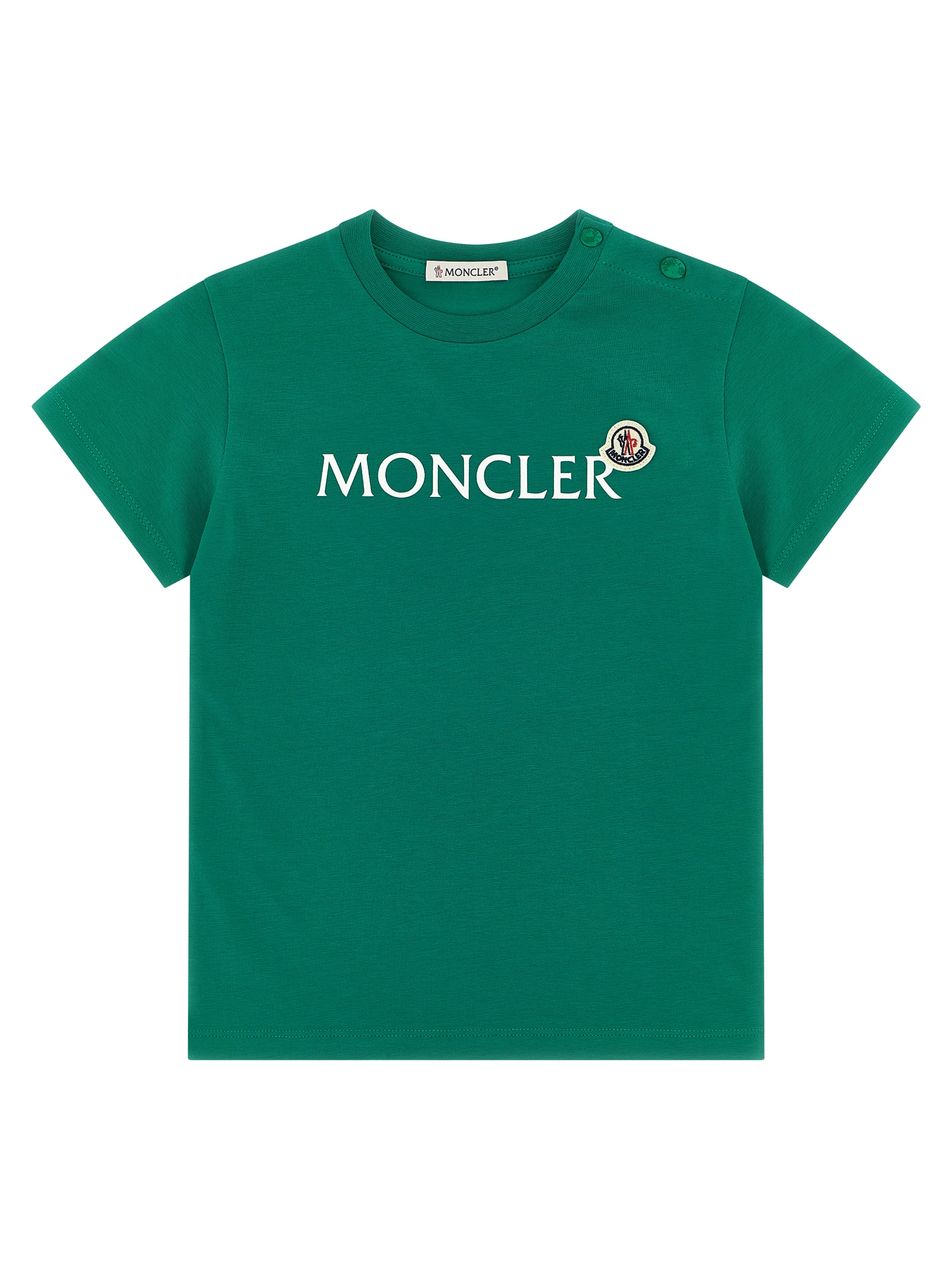 KIDS Cotton jersey T-shirt with logo print and felt logo patch on the front, crew neck, snap buttons on the left shoulder, and short sleeves.