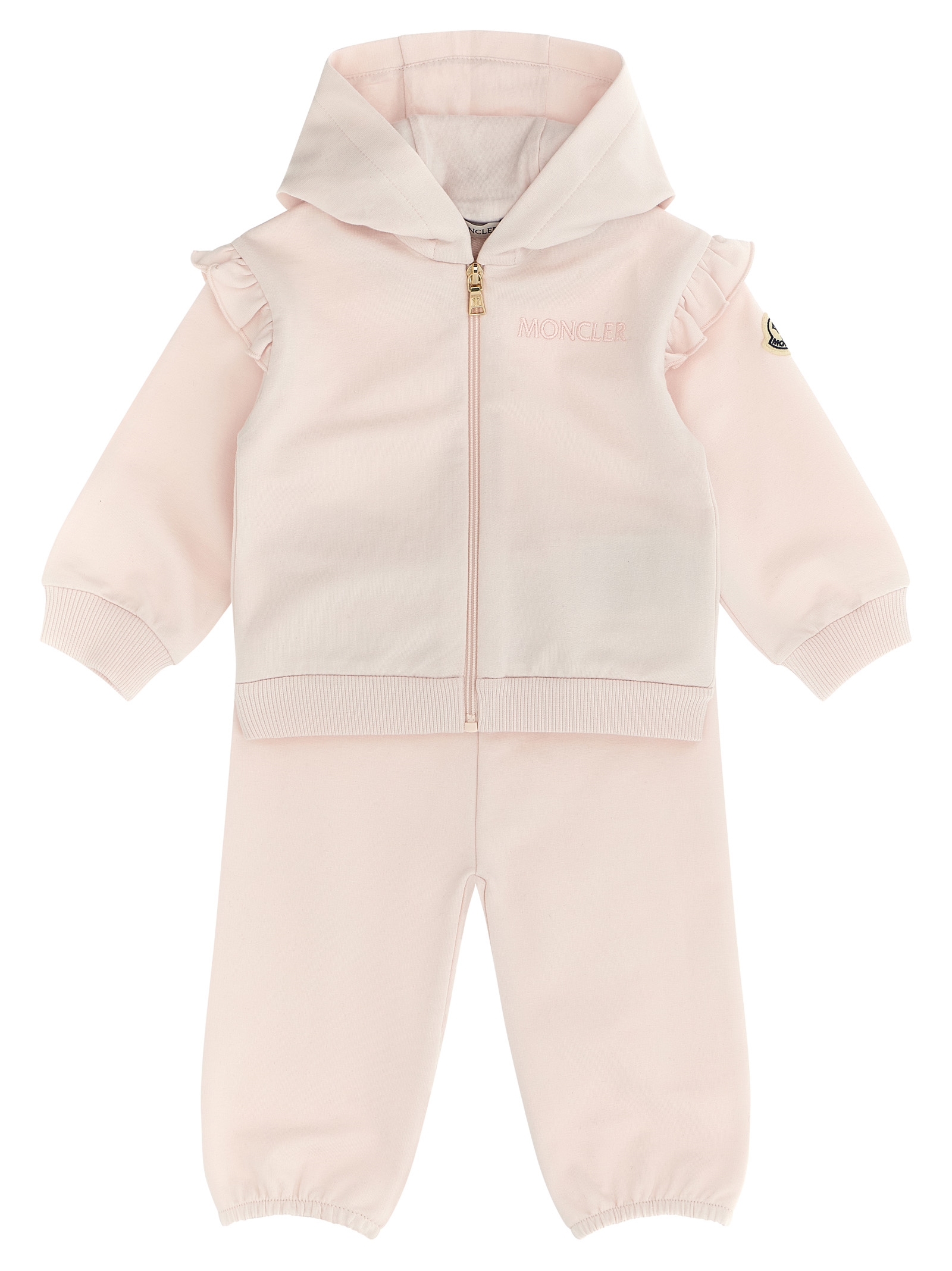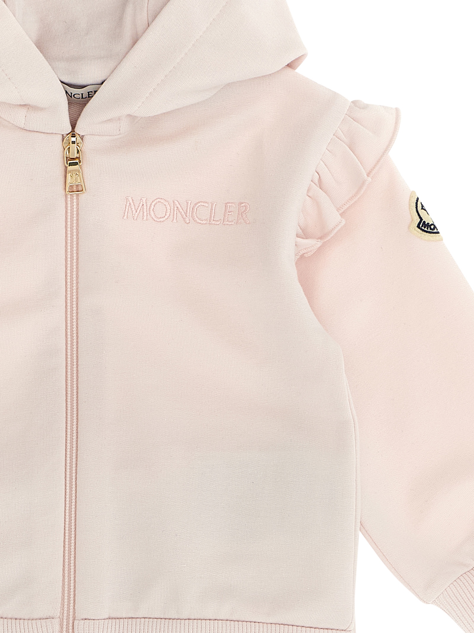 KIDS Gauze cotton suit with tone-on-tone ruffles consisting of hoodie, tone-on-tone logo embroidery and front zip closure, long sleeves with cuffs, felt logo patch and joggers with elastic waistband and elastic hem.