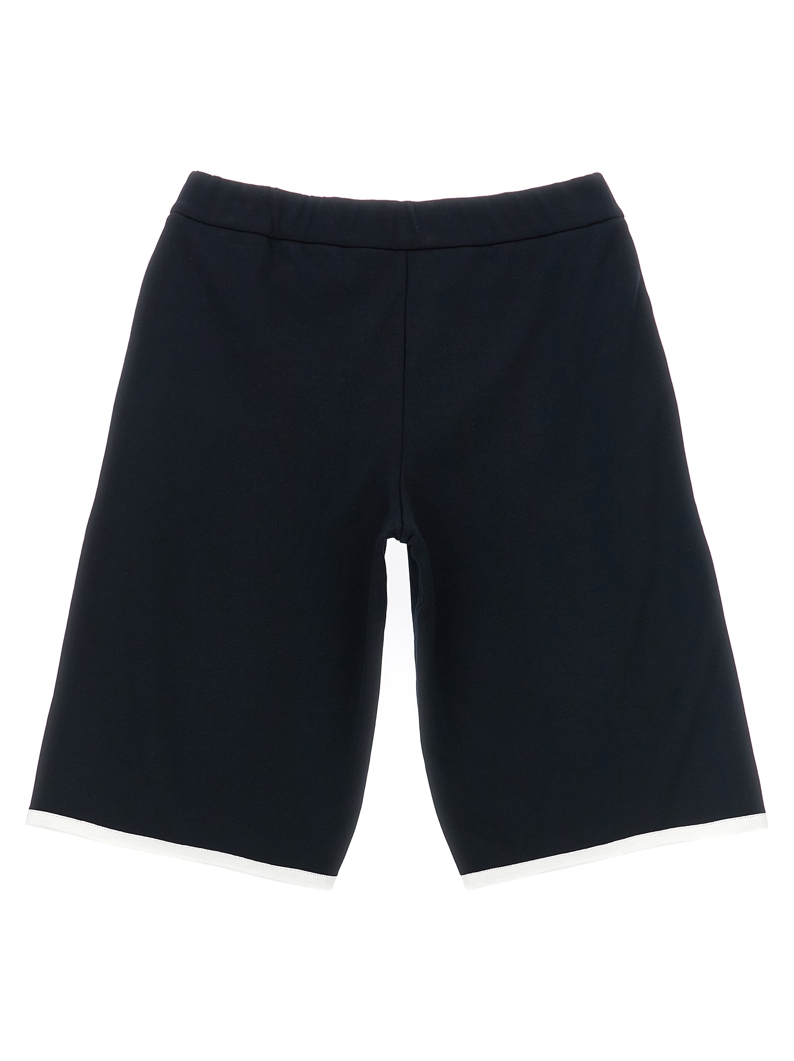 Stretch cotton jersey bermuda shorts, front felt logo patch, elastic waistband, trompe l'oeil flap, pockets, contrast piping on the hem.