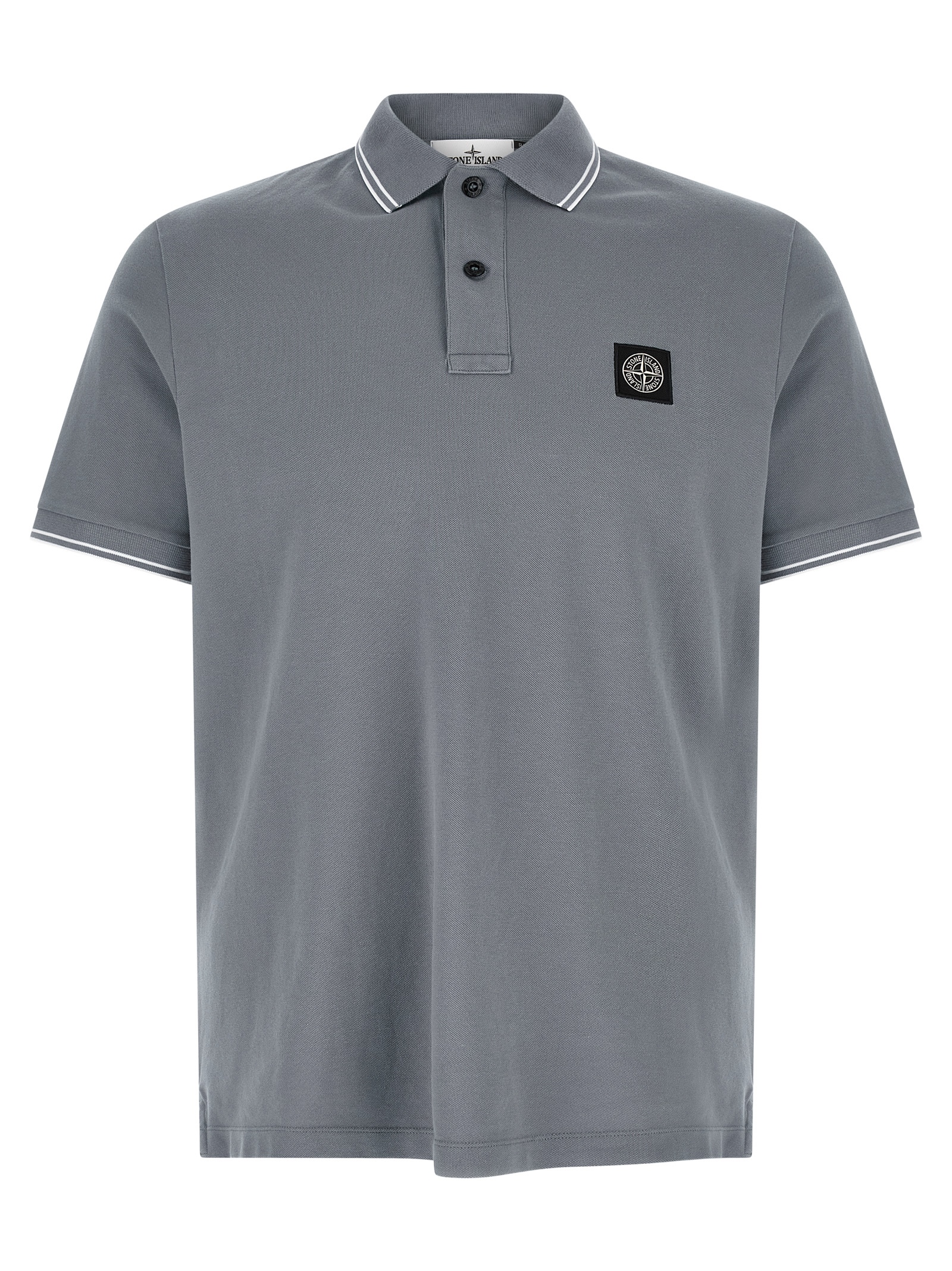 '2200010' cotton piqué polo shirt with contrast details, front 'Compass' logo patch, collar and buttons, short cuffed sleeves, side slits. SUSTAINABLE: This product is made of organic cotton.