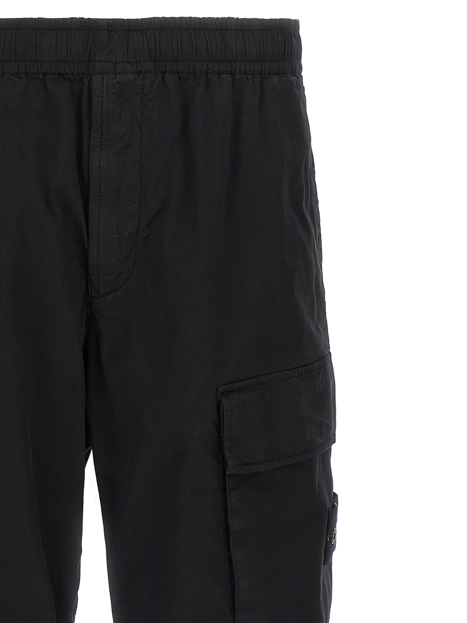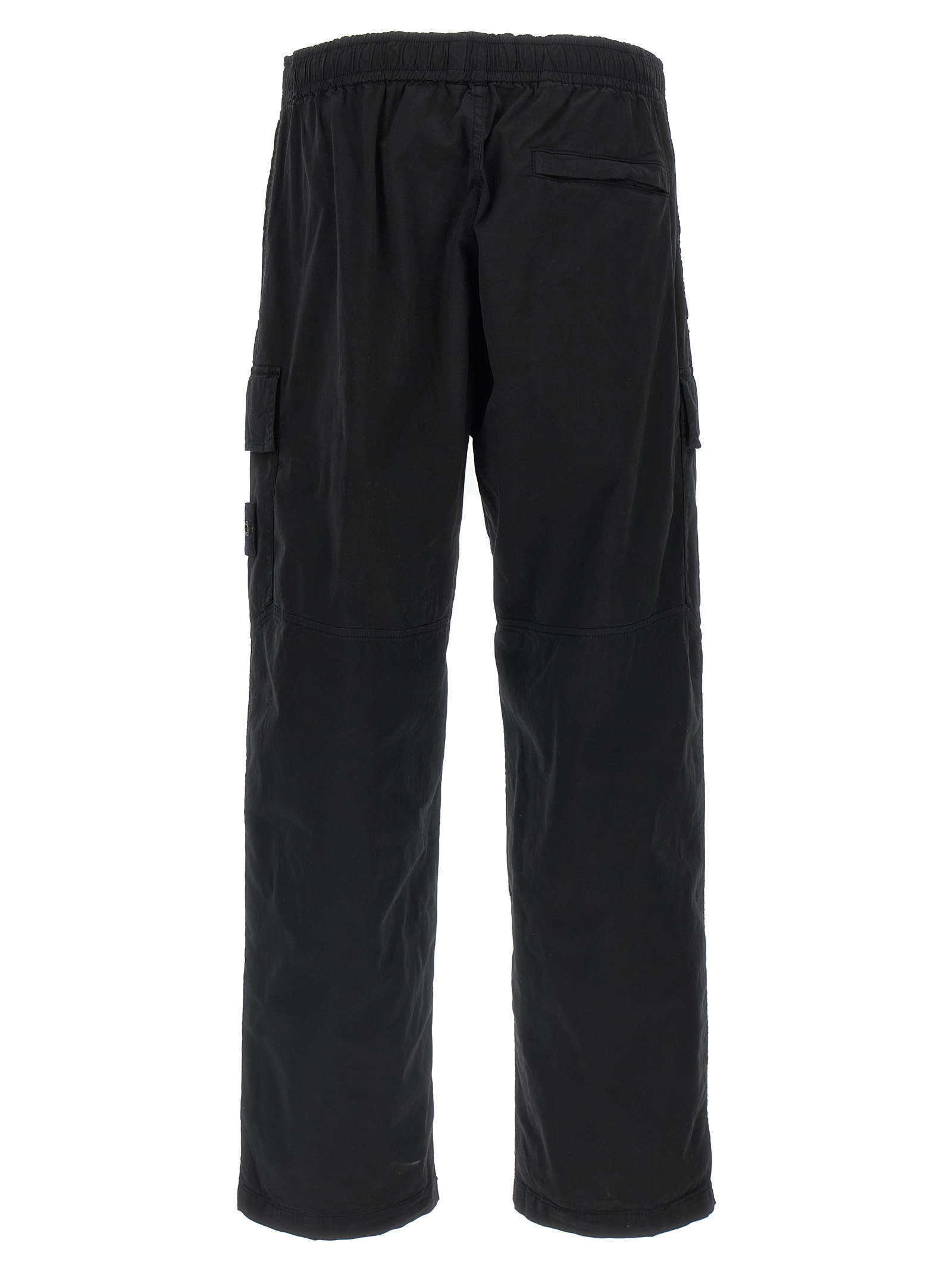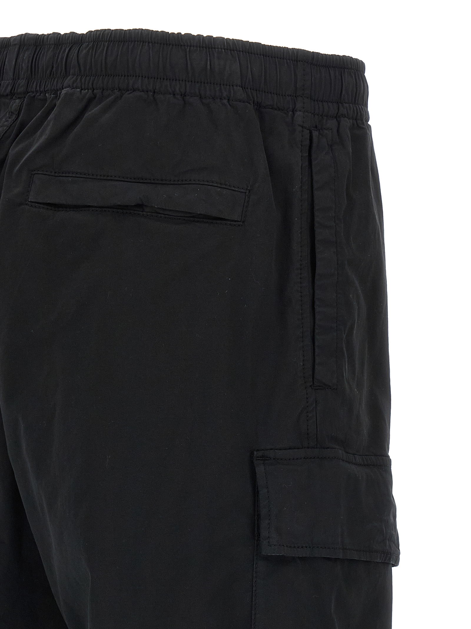 '3100021' garment-dyed stretch cotton twill pants, cargo style with tone-on-tone logo badge on the side pocket, drawstring elastic waistband, zip flap, pockets. SUSTAINABLE: This product is made with organic cotton.