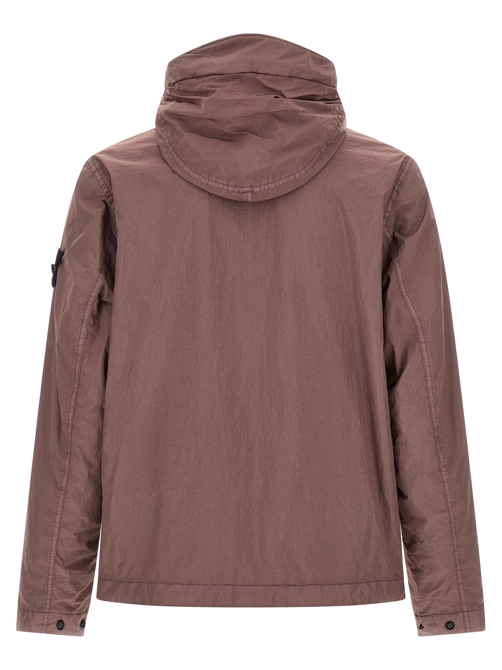 '4100001' lightweight nylon reps jacket with very dense weave structure, garment-dyed with anti-drip agent and wrinkled-effect resin treatment, adjustable hood with shaped visor, front zip closure, pockets, long sleeves with cuffs and logo badge applied, drawstring on the hem. SUSTAINABLE: Product made with recycled materials.